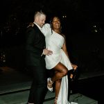 Beauty Aliyah Artistry Cake Elite Treats Caterer Gertrude’s Chesapeake Kitchen Flowers Setting the Scene Décor Groom The Gentlemen’s Closet Honeymoon Costa Rica, Tulemar Resort Invitations Minted Location Baltimore Museum of Art & Gertrude’s Music Toussaint Productions (DJ), Marvillous Beats (violin) Officiant Elissa Doula Photographer Meg Laffey Photo Wedding Dress The One Bridal