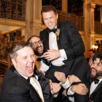 Beauty Tiffany Lumpkin (bridal hair/makeup, bridesmaid makeup); Vintage Veils (bridesmaid hair) Bridesmaids Cocomelody Caterer & Cake The Classic Catering People Dance Lessons In Home Wedding Dance Lessons & Choreography Floral Design Tilled Studio Groom and Groomsmen Enzo Custom (groom’s suit) Generation Tux (groomsmen) Invitations Alpha Graphics (save the dates); Just Ink on Paper (wedding invitations) Lighting Event Dynamics Location The George Peabody Library (ceremony and reception); plus, The Bromo Seltzer Arts Tower (additional wedding photographs) Music Two Rivers Chamber Music (cocktail hour); DJ Kopec (reception) Officiant Abbott Matthews, friend of the bride & groom Photo Booth Snap Happy Photo Booth Photographer Anna Schmidt Photography Transportation Jay’s Valet and American Limousines Wedding Day Dog Care Furever & Always Wedding Dress Pronovias (bridal gown) and Sassi Holford (Bromo Seltzer photo shoot dress) Wedding Planner The Otherside Creatives