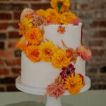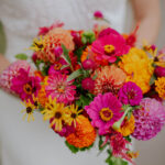 Wedding Design Inspiration Bold color! Marigolds and dahlias are at their peak in September, so we used those flowers in our bouquets and built our other color choices around the saturated hues.
