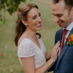 How You Met One crisp October evening, Emily wore a dragon mask (face visible) to a back patio Halloween party. Colin, who was sitting in one of the patio chairs, costumeless, shook her hand and introduced himself and admired her as she talked to the other guests. Unbeknownst to Emily, Colin had seen her for the first time at a café only weeks earlier. He left the party early for a dinner with friends and told them about her excitedly. He put his trust in the the “rule of threes” to see her again, and at the (in his mind) inevitable third meeting, he planned to ask her out. Weeks and months passed. That third meeting never came. Finally, Colin asked the host of the patio party for Emily’s number. She was busy painting her new house, but was available in a few weeks. Finally, after a dinner date over Thai food in Hampden and a snowball for dessert, both were smitten, and the rest is history.