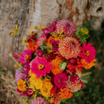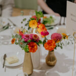 Wedding Design Inspiration Bold color! Marigolds and dahlias are at their peak in September, so we used those flowers in our bouquets and built our other color choices around the saturated hues.