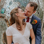 How You Met One crisp October evening, Emily wore a dragon mask (face visible) to a back patio Halloween party. Colin, who was sitting in one of the patio chairs, costumeless, shook her hand and introduced himself and admired her as she talked to the other guests. Unbeknownst to Emily, Colin had seen her for the first time at a café only weeks earlier. He left the party early for a dinner with friends and told them about her excitedly. He put his trust in the the “rule of threes” to see her again, and at the (in his mind) inevitable third meeting, he planned to ask her out. Weeks and months passed. That third meeting never came. Finally, Colin asked the host of the patio party for Emily’s number. She was busy painting her new house, but was available in a few weeks. Finally, after a dinner date over Thai food in Hampden and a snowball for dessert, both were smitten, and the rest is history.