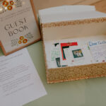 • We had a deconstructed guestbook with loose cards and papers that guests could decorate with colorful pens, stickers, and Polaroid pictures.