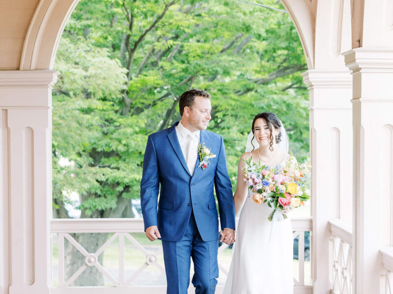 Favorite Details Paper pinwheels, hundreds of them, all handmade by the mother of the bride; and the beautiful bridal brooch bouquet, with lots of vintage pieces, contributions from family members, all built around a drumstick from the bride’s beloved older brother who passed away shortly before the wedding.
