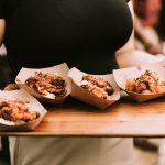 Marisa and Jamie—both world-travelers—knew they wanted a destination wedding and, inspired by a former client of Marisa’s restaurant industry-focused public relations/marketing firm, Scintillate, they had their hearts set on Mallorca, Spain. The two originally planned to be married in May 2020 in a villa overlooking the Mediterranean Sea. Then COVID-19 hit and they—like so many others—postponed their wedding. “As we tried to plan for May 2021, we realized that traveling there was going to be impossible and irresponsible,” says Marisa. They had almost given up entirely on having a ceremony when Shawn Chopra, owner of the Good Neighbor shop, happened to mention they had been hosting micro-weddings during the pandemic. Marisa perked up. “What about a not-so-micro-wedding?” she asked. And so, their destination wedding turned into a 75-person Baltimore City party with food cooked by Good Neighbor chef Durian Neal. The two had been good friends with Neal for years, and it was extra meaningful to “share his magical food with our favorite people” with a menu that hinted at their Southern and Filipina roots. “We’ve built a beautiful community here, especially among the hospitality world, and having our ceremony here meant that our friends and favorites could be part of the celebration.”