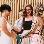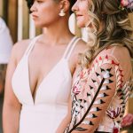 Marisa and Jamie—both world-travelers—knew they wanted a destination wedding and, inspired by a former client of Marisa’s restaurant industry-focused public relations/marketing firm, Scintillate, they had their hearts set on Mallorca, Spain. The two originally planned to be married in May 2020 in a villa overlooking the Mediterranean Sea. Then COVID-19 hit and they—like so many others—postponed their wedding. “As we tried to plan for May 2021, we realized that traveling there was going to be impossible and irresponsible,” says Marisa. They had almost given up entirely on having a ceremony when Shawn Chopra, owner of the Good Neighbor shop, happened to mention they had been hosting micro-weddings during the pandemic. Marisa perked up. “What about a not-so-micro-wedding?” she asked. And so, their destination wedding turned into a 75-person Baltimore City party with food cooked by Good Neighbor chef Durian Neal. The two had been good friends with Neal for years, and it was extra meaningful to “share his magical food with our favorite people” with a menu that hinted at their Southern and Filipina roots. “We’ve built a beautiful community here, especially among the hospitality world, and having our ceremony here meant that our friends and favorites could be part of the celebration.”