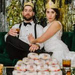Four years later, after a proposal inside the Patterson Park pagoda—the first time either had stepped foot in the structure—the two started to plan their wedding. The date was actually the easiest part. They wanted to get married on December 27th, just as Kathleen’s grandparents had done in Chicago in 1947. But they didn’t want it to be all snow globes and Santa Claus. “We were planning on a Catholic ceremony, inevitably Christmassy, and so we wanted our reception to contrast that by leaning more into New Year’s Eve vibes,” says Kathleen. They also wanted the reception to simply be fun but with a nod to all the things they really loved about their city and their families.