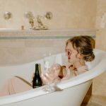 Heather Shields and Jeb Burchick met at Towson University in the fall of 2013. Heather was a junior and Jeb a freshman, two ships passing in the night. (Or library.) They didn’t have much interaction until the following year, when Heather returned from a semester abroad in Wales and found herself living in the same apartment building as Jeb. They soon “bonded over watching The Office, movie marathons, and trying new pasta dishes for dinner dates,” says Heather. When Jeb proposed in July 2020—with John Legend’s “Stay With You” playing on his laptop—they did a lot of celebrating and very little planning as they waited to see what the pandemic held. At the start of 2021, they began thinking about their wedding in earnest. Heather, a hairstylist at Little Moon Salon in Columbia, wanted a Bridgerton-esque, English-countryside aesthetic, with timeless and romantic décor. She started scouring shops and found a vintage naval desk for their remembrance table and turned old windowpanes from her childhood home into