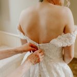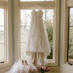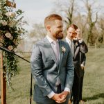 Heather Shields and Jeb Burchick met at Towson University in the fall of 2013. Heather was a junior and Jeb a freshman, two ships passing in the night. (Or library.) They didn’t have much interaction until the following year, when Heather returned from a semester abroad in Wales and found herself living in the same apartment building as Jeb. They soon “bonded over watching The Office, movie marathons, and trying new pasta dishes for dinner dates,” says Heather. When Jeb proposed in July 2020—with John Legend’s “Stay With You” playing on his laptop—they did a lot of celebrating and very little planning as they waited to see what the pandemic held. At the start of 2021, they began thinking about their wedding in earnest. Heather, a hairstylist at Little Moon Salon in Columbia, wanted a Bridgerton-esque, English-countryside aesthetic, with timeless and romantic décor. She started scouring shops and found a vintage naval desk for their remembrance table and turned old windowpanes from her childhood home into