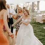 About halfway through the reception, Heather and Jeb snuck away in a golf cart to pose for some additional portraits at the venue’s private beach with their photographer, Madeline Serio. “She knew I was game to do just about anything for a cool shot, and suggested we go in the water,” says Heather. She was willing, but Jeb needed a little bit more encouragement. He rolled up his pant legs and Heather hiked up her dress and they ran in together, laughing—the chilly water lapping at their ankles. “We assumed our guests were still back on the dance floor, but they were watching from the gazebo overlooking the beach and cheering us on as we went in,” says Heather. “It was such a fun, spontaneous moment that we’ll never forget.”