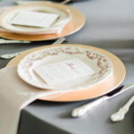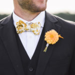 “My mom and I loved every part of planning this wedding,” says Arianna. From sourcing the stamps for her invitations to collecting mismatched china—from Craigslist and thrift stores—for all 135 guests to making all the signage. Arianna also created all the bouquets, centerpieces, and boutonnieres, picking up the stems the Wednesday before her wedding. She and her mom strung beakers and flasks filled with flowers to the tree limb over their ceremony site—a nod to Arianna’s science field.