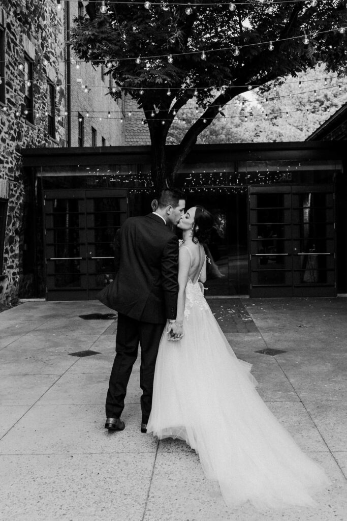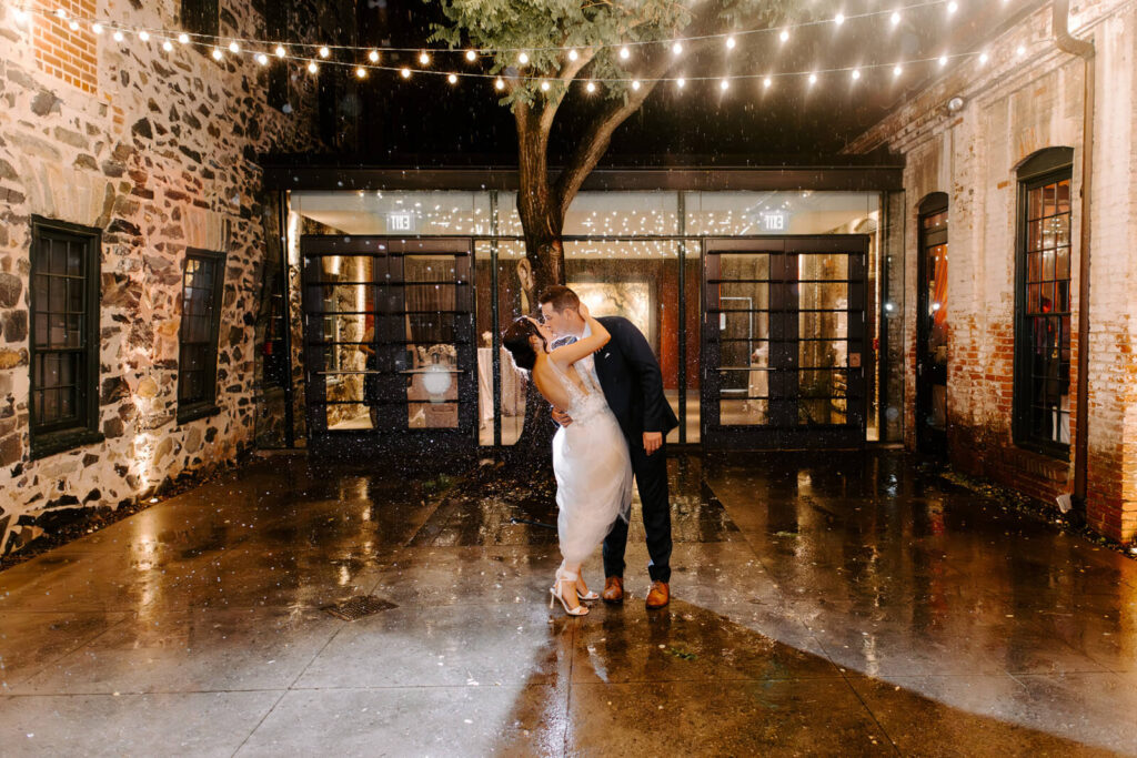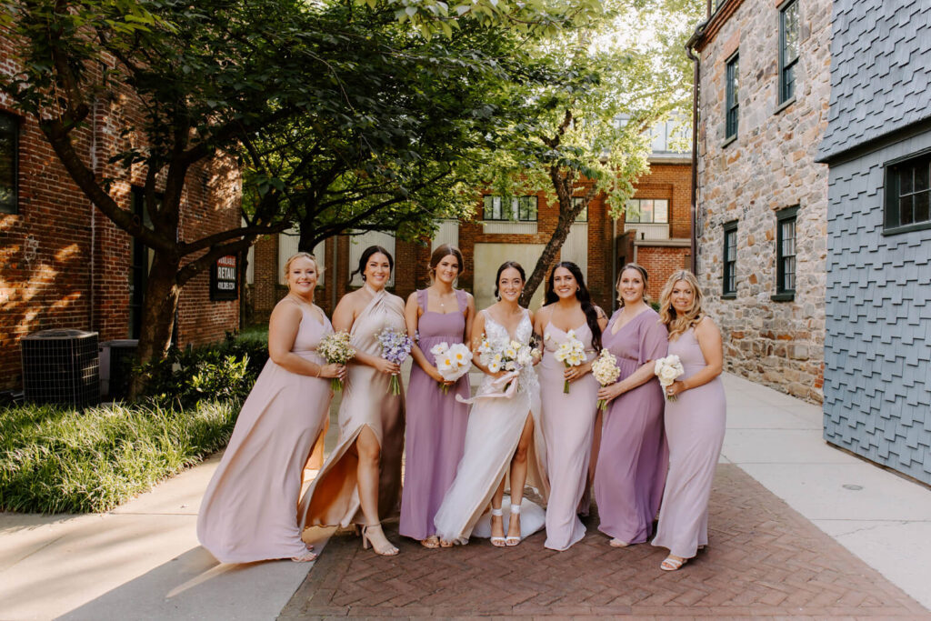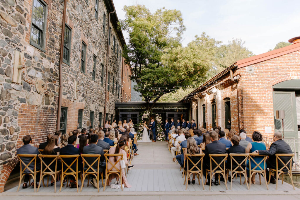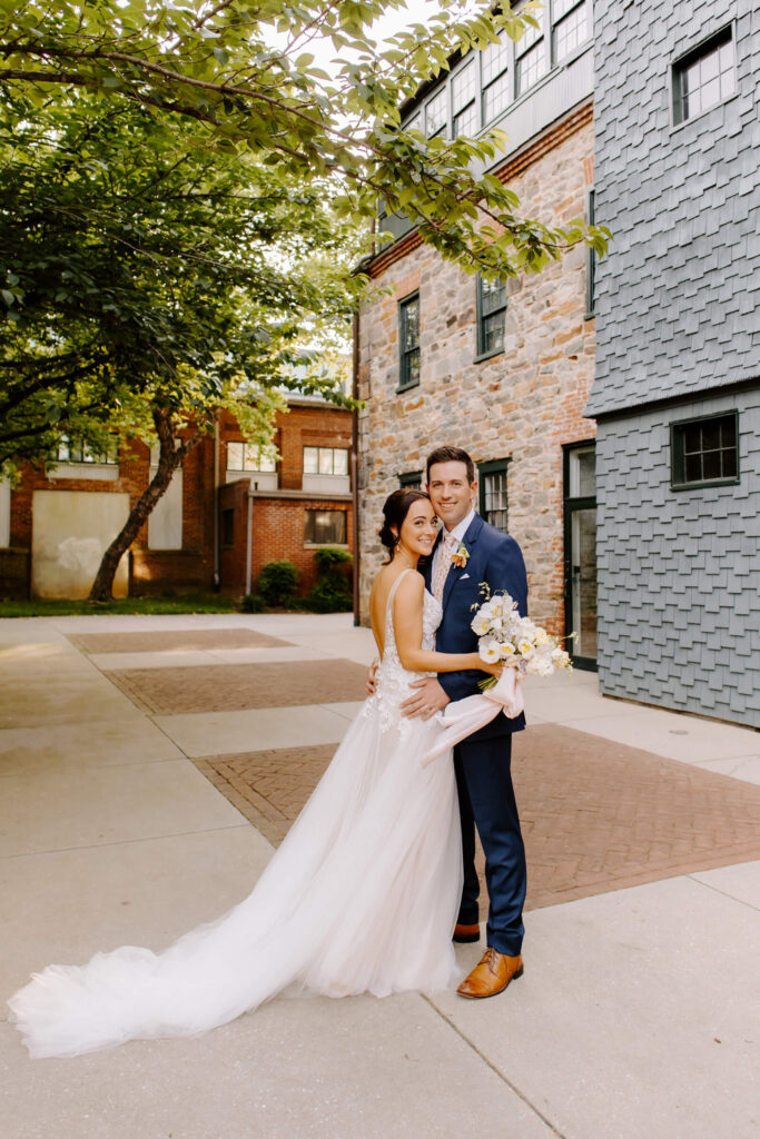 Beauty JKW Beauty Bridesmaids Show Me Your Mumu Caterer and Cake Copper Kitchen Floral Design Ritual Floral Groom and Groomsmen The Black Tux Honeymoon Paris and Positano Invitations Minted Location Mt. Washington Mill Dye House Music Great Scott Productions Officiant Michael Lynch, friend of the couple Photographer Alicia Wiley Transportation Thoroughbred Wedding Dress Posh Bridal Wedding Planner S.D. Events