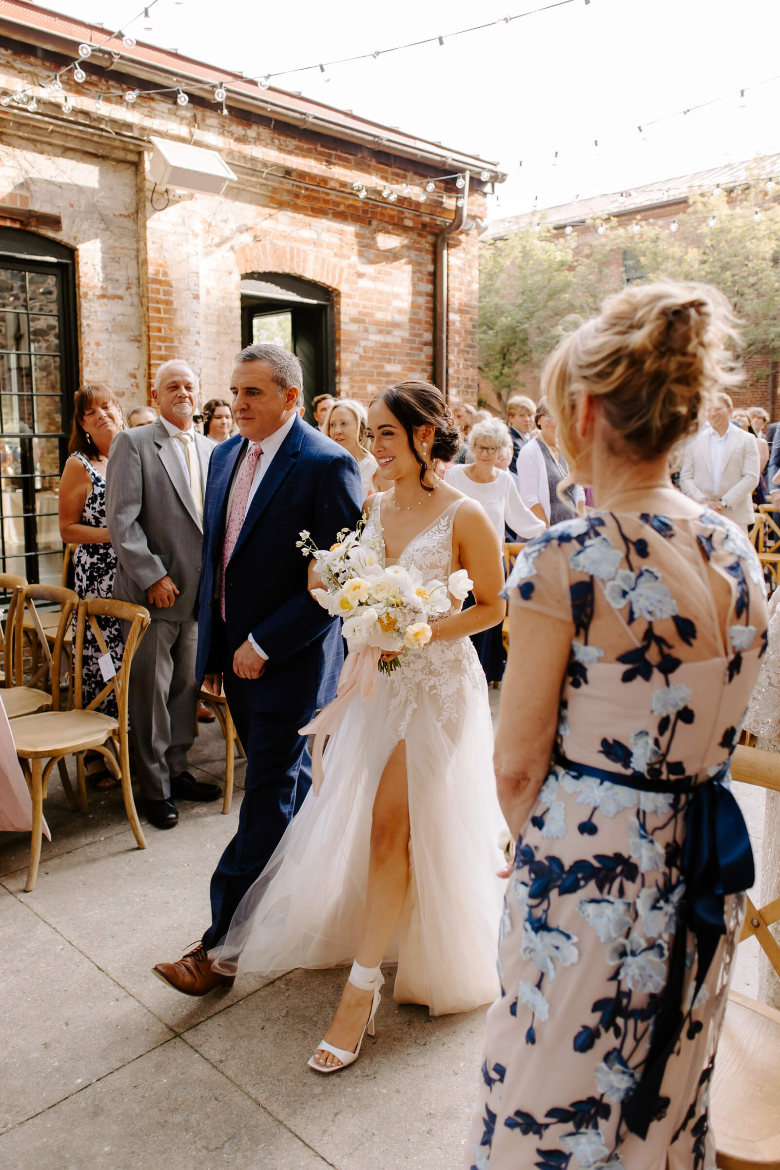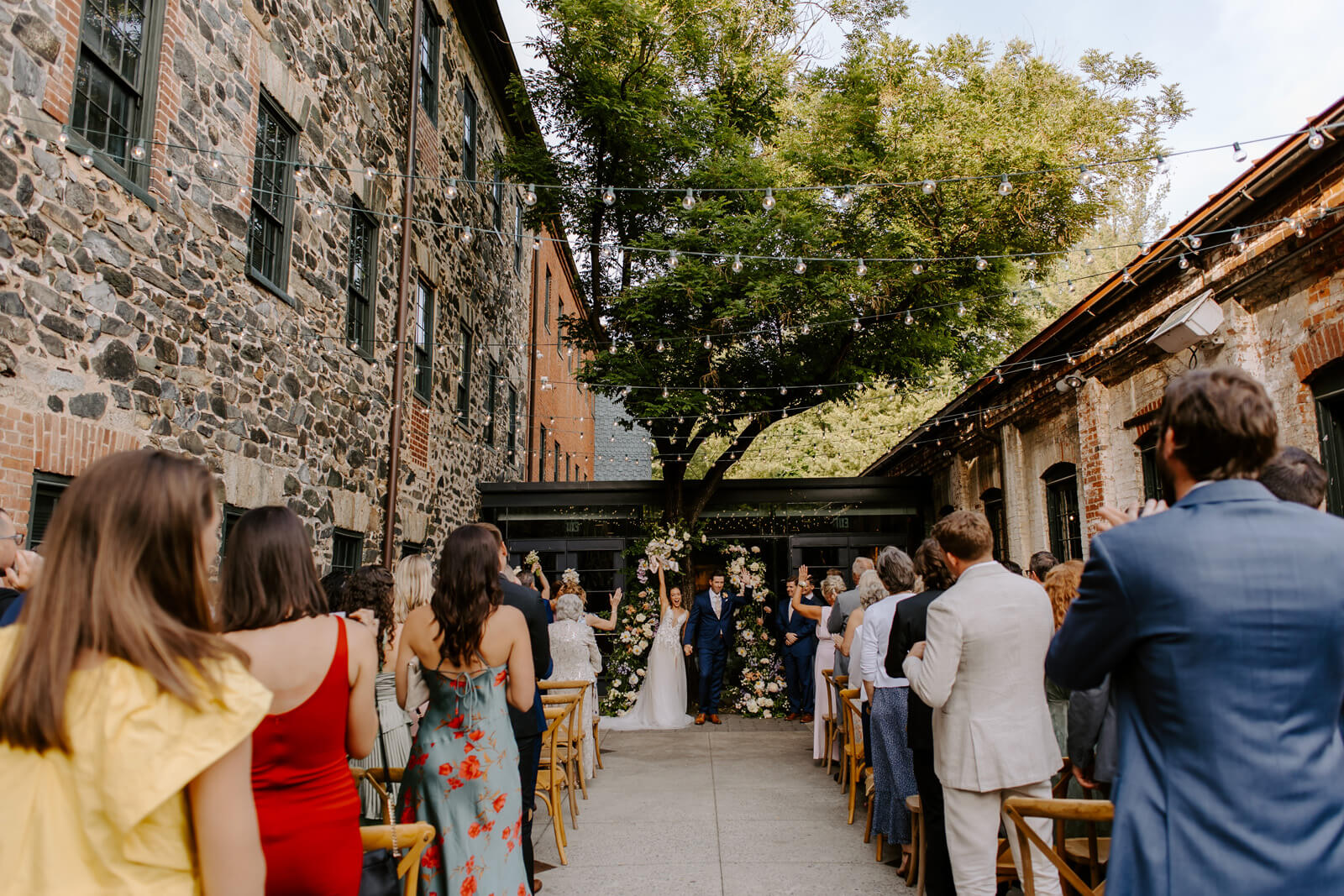 Beauty JKW Beauty Bridesmaids Show Me Your Mumu Caterer and Cake Copper Kitchen Floral Design Ritual Floral Groom and Groomsmen The Black Tux Honeymoon Paris and Positano Invitations Minted Location Mt. Washington Mill Dye House Music Great Scott Productions Officiant Michael Lynch, friend of the couple Photographer Alicia Wiley Transportation Thoroughbred Wedding Dress Posh Bridal Wedding Planner S.D. Events