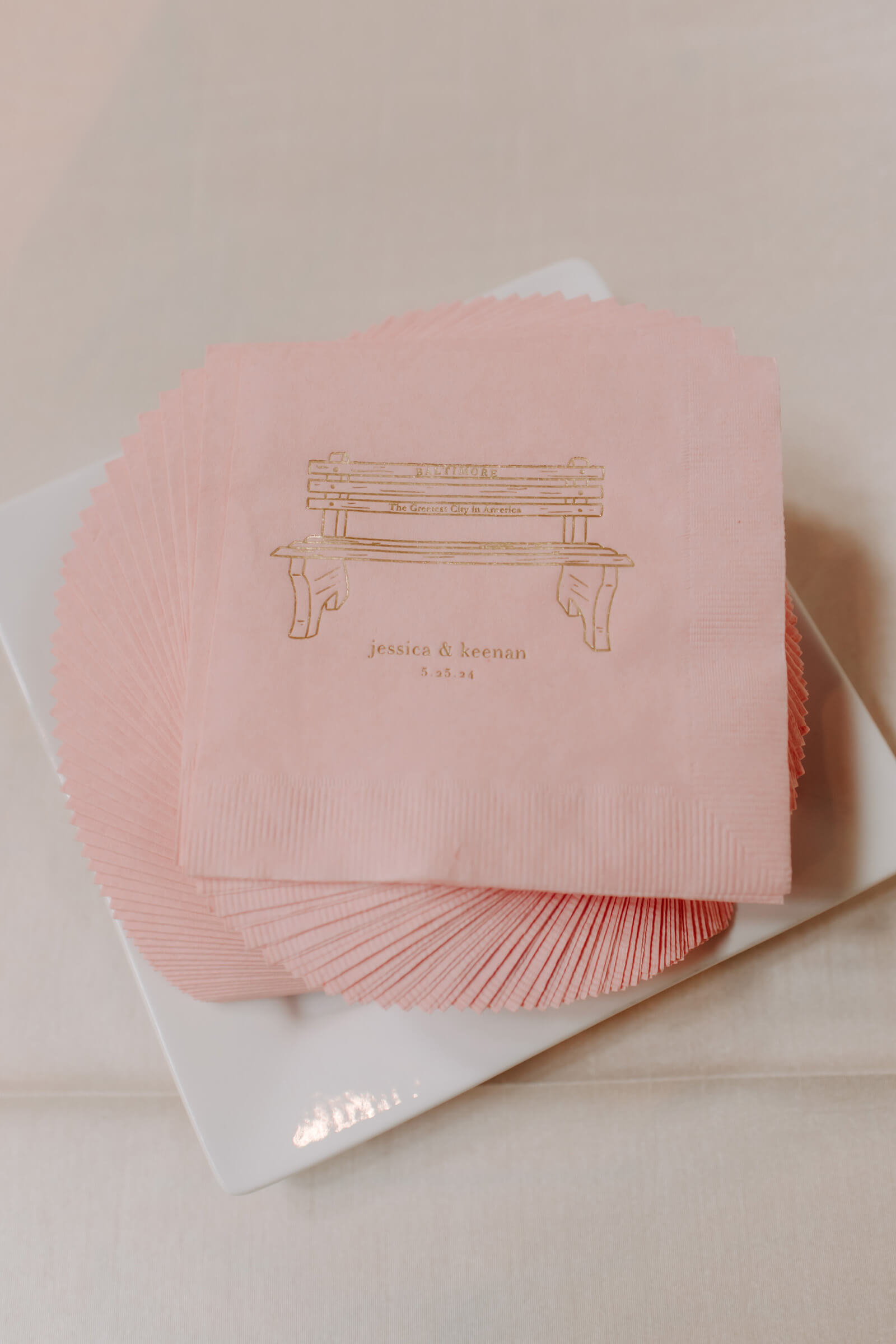 Favorite Details During the father daughter dance, we transitioned it to “Thank God I’m a Country Boy” and had the Oriole bird come out. He really knows how to get a party started. I’m a sucker for little details so those were the things I cared about the most. I found super old photos of couples for our seating chart, and it surprised a lot of people. We always tell people Baltimore is the greatest city in America, it’s what the benches say. So, I had to have that be our cocktail napkins.