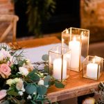Wedding Design Inspiration The Mt. Washington Mill Dye House was on my hidden Pinterest board for years. After touring the space we were sold, and our vision evolved into a rustic chic style. As avid DIY’ers we knew we wanted to make most, if not all, of our decor. Honeywood Event Rentals provided farm tables and whiskey barrels that gave a rustic feel while Event Dynamics provided lush fabric curtains and café lighting strung throughout the venue to give a chic and romantic feel. A balance like no other. All of the florals were arranged by family friends who once owned a floral shop—their attention to detail and ability to put an entire Pinterest board to life was unwavering.