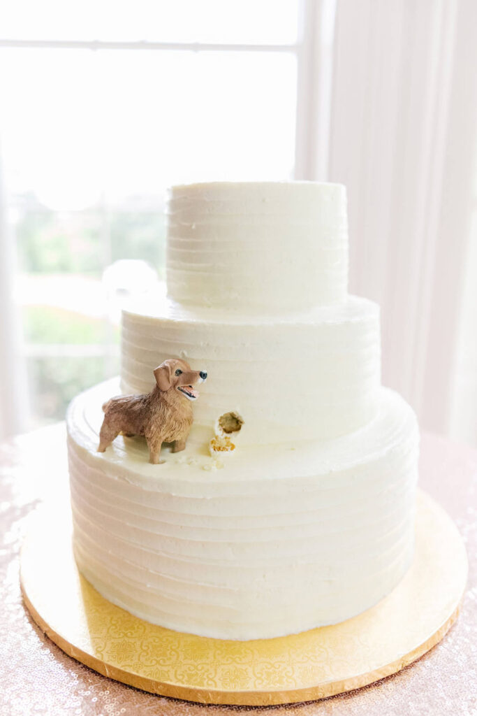 What Was Unique and Special About Your Wedding Day We are both obsessed with our dog, so she was incorporated into many aspects including our invitations, welcome sign, and even a small figurine of her on our wedding cake. She even walked down the aisle and sat listening to the whole ceremony.