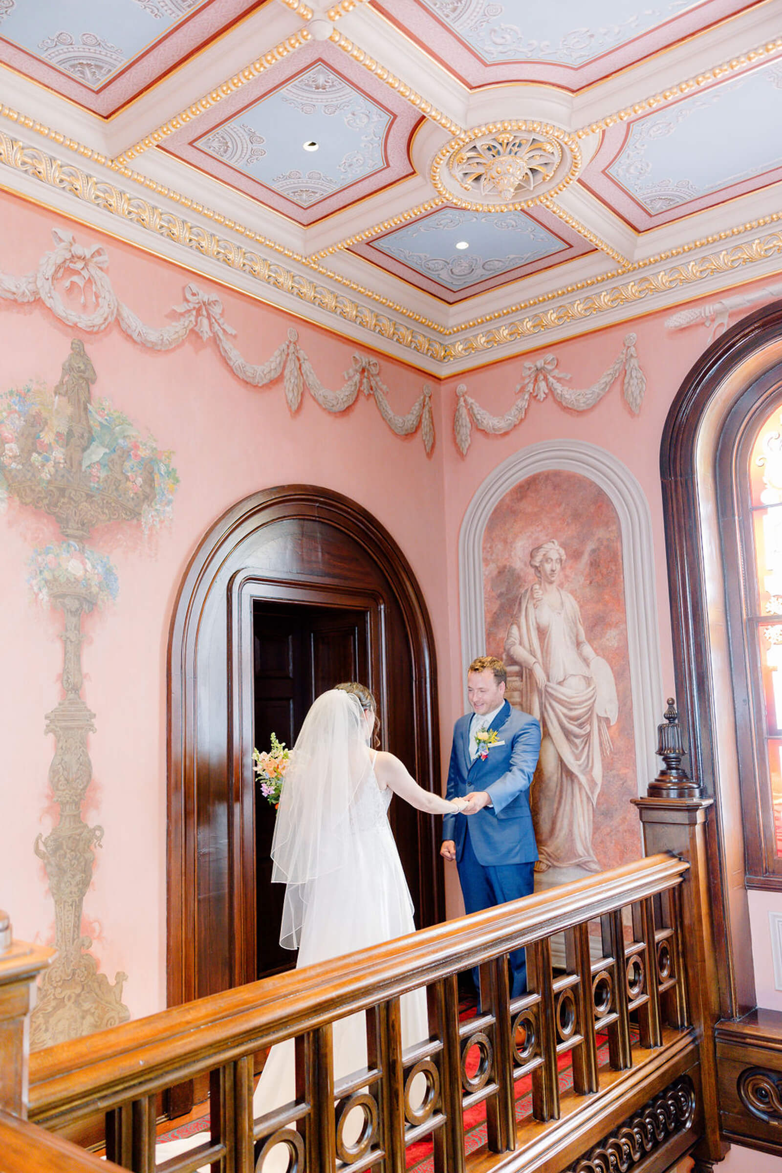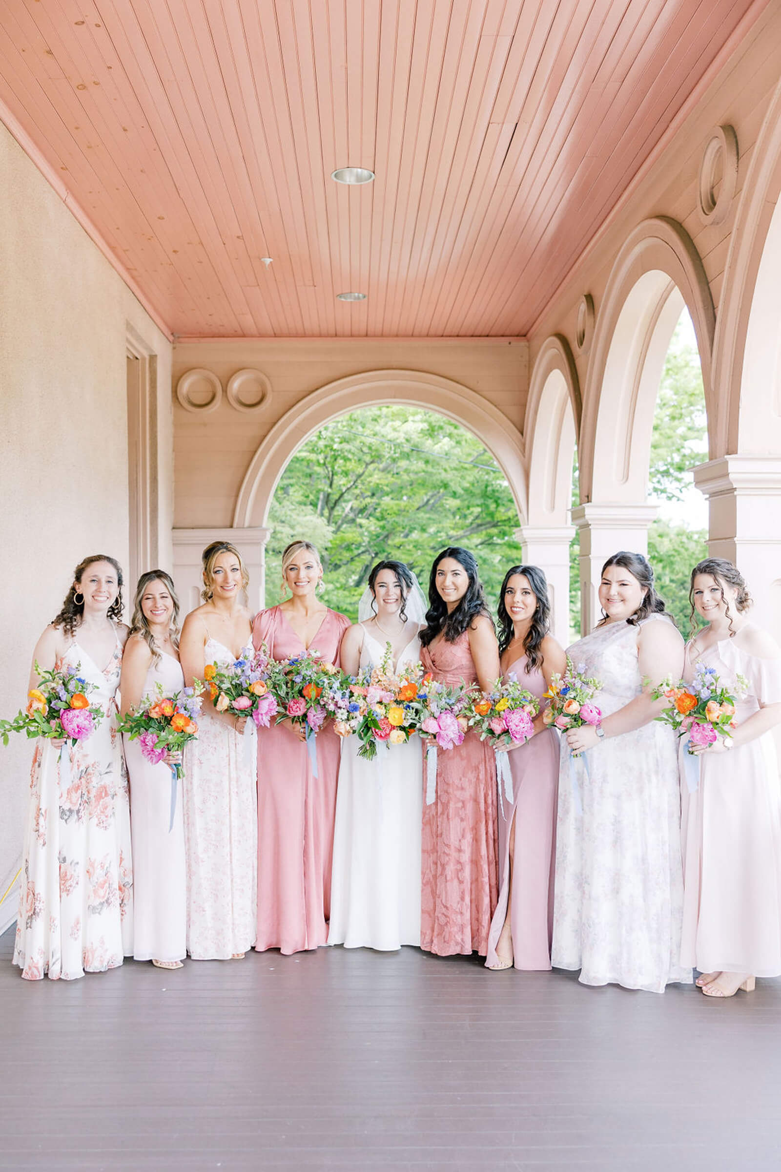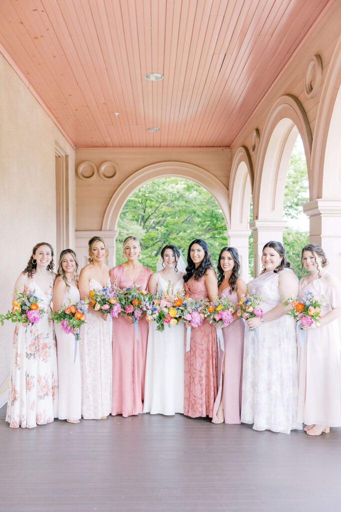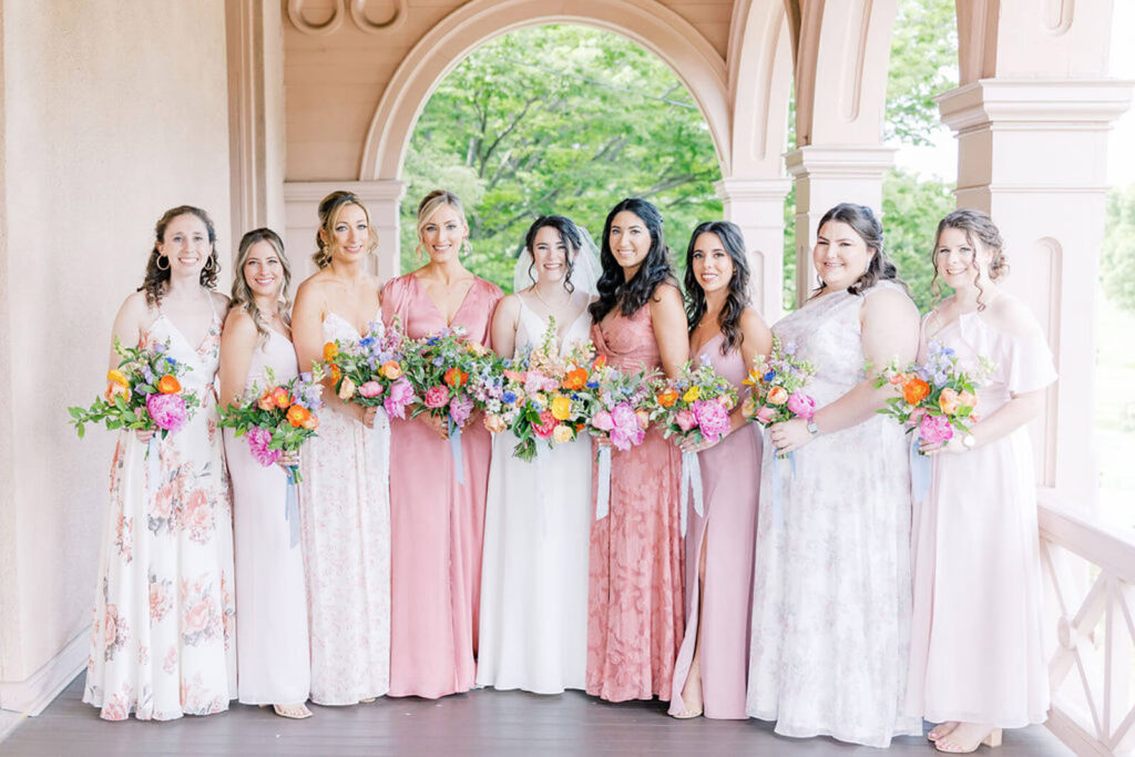 BEAUTY The Brushing Bride (hair); Makeup by Kaitlin C (makeup) BRIDESMAIDS I had each of my bridesmaids decide on their own dress by giving them a palette of pinks that they could choose from. Some bridesmaids wore florals, and some wore solids, they all looked amazing together. CAKE Brittany Brendel CATERER Rouge Catering FLORAL Marigold Sisters Floral GROOM AND GROOMSMEN Tuxedo House HONEYMOON Cruise in the Mediterranean INVITATIONS Letter Art LOCATION Clifton Mansion, especially Natrina Lee the wedding coordinator. MUSIC Spectrum Band OFFICIANT Rabbi Daniel Cotzin Burg PHOTOGRAPHER Erica Lynn RENTALS Elite Tents and Events TRANSPORTATION Thoroughbred VIDEOGRAPHER Fordham Films Wedding Dress Betsy Robinson Bridal Wedding Planner 1423 Events