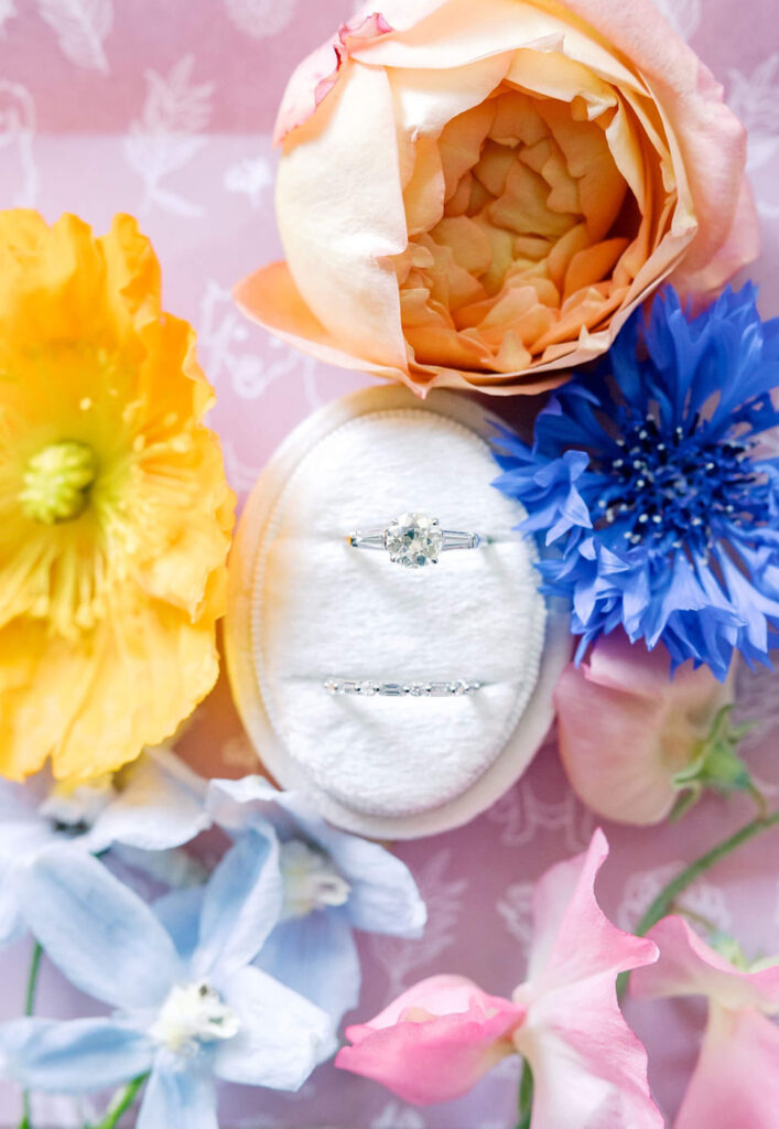 The diamond in my engagement ring came from my grandmother. She passed away a year before I was born, but I grew up with my mom speaking of her so frequently that sometimes I forget I never got to know her. In creating the ring, Mitch learned that the diamond is over 100 years old and came from Europe. Unfortunately, we aren’t able to find out the back story on how my grandfather got it.