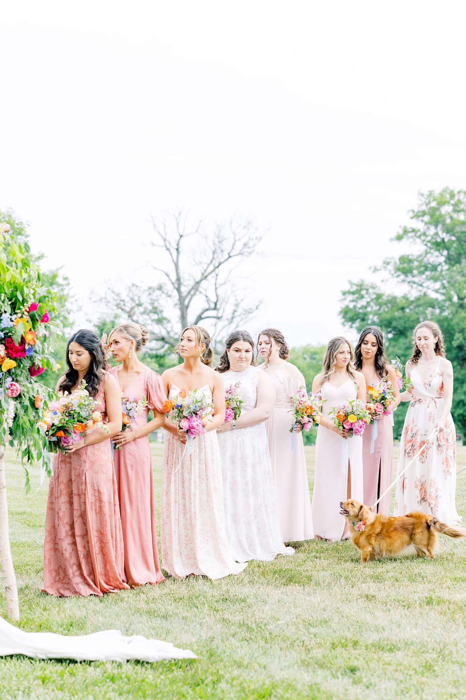 Number of Attendants Six groomsmen, eight bridesmaids, two flower girls, a ring bearer, and one dog of honor.