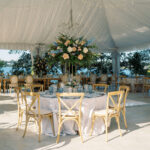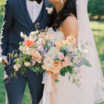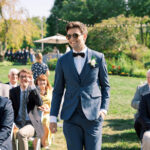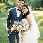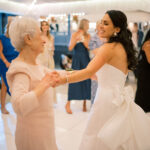 The week before the couple’s wedding was filled with tumultuous rain clouds, which gave way to a clear and sunny 70 degrees for their garden party. Cocktail hour on the lawn consisted of oysters, chic paper parasols, a gaggle of floral-gowned bridesmaids, and three signature cocktails named after their pets, of course. But the most special part of the wedding was Katya’s babushka (that’s “grandmother” in Russian) Nina. Katya and her family are originally from Kyiv, Ukraine, and Nina was still living there when the country was invaded. Luckily, they were able to get her out with the help of a nonprofit called Project Dynamo. “One of the most special moments of our wedding was getting to dance with babushka on the dance floor,” says Katya. “I recommend leaning into your roots to cherish all that came before you—which ultimately leads to your special wedding day.”