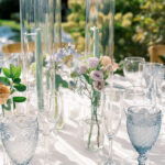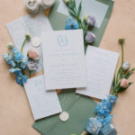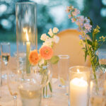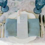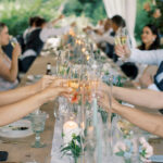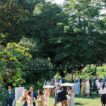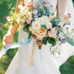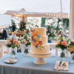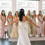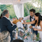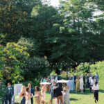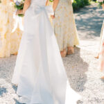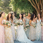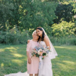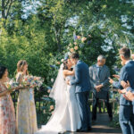 The week before the couple’s wedding was filled with tumultuous rain clouds, which gave way to a clear and sunny 70 degrees for their garden party. Cocktail hour on the lawn consisted of oysters, chic paper parasols, a gaggle of floral-gowned bridesmaids, and three signature cocktails named after their pets, of course. But the most special part of the wedding was Katya’s babushka (that’s “grandmother” in Russian) Nina. Katya and her family are originally from Kyiv, Ukraine, and Nina was still living there when the country was invaded. Luckily, they were able to get her out with the help of a nonprofit called Project Dynamo. “One of the most special moments of our wedding was getting to dance with babushka on the dance floor,” says Katya. “I recommend leaning into your roots to cherish all that came before you—which ultimately leads to your special wedding day.”
