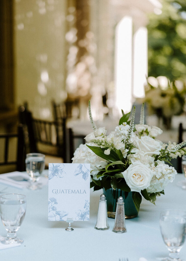 Favorite Details One of our favorite details was the travel theme woven throughout the reception, inspired by our shared love of exploring the world together. To date, we’ve visited 15 countries as a couple, and we wanted that spirit of adventure to be reflected in the celebration. Our seating chart was presented as a custom map, each table featured a centerpiece with a photo from one of our trips, and guests found luggage tags waiting at their seats as favors. These personal touches added a meaningful layer to the overall design.