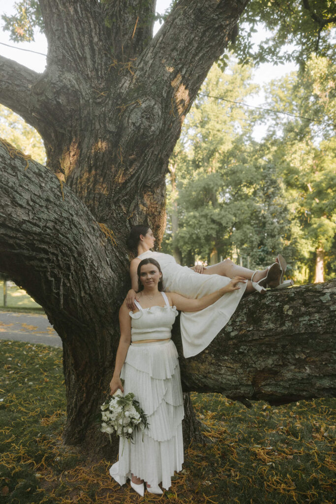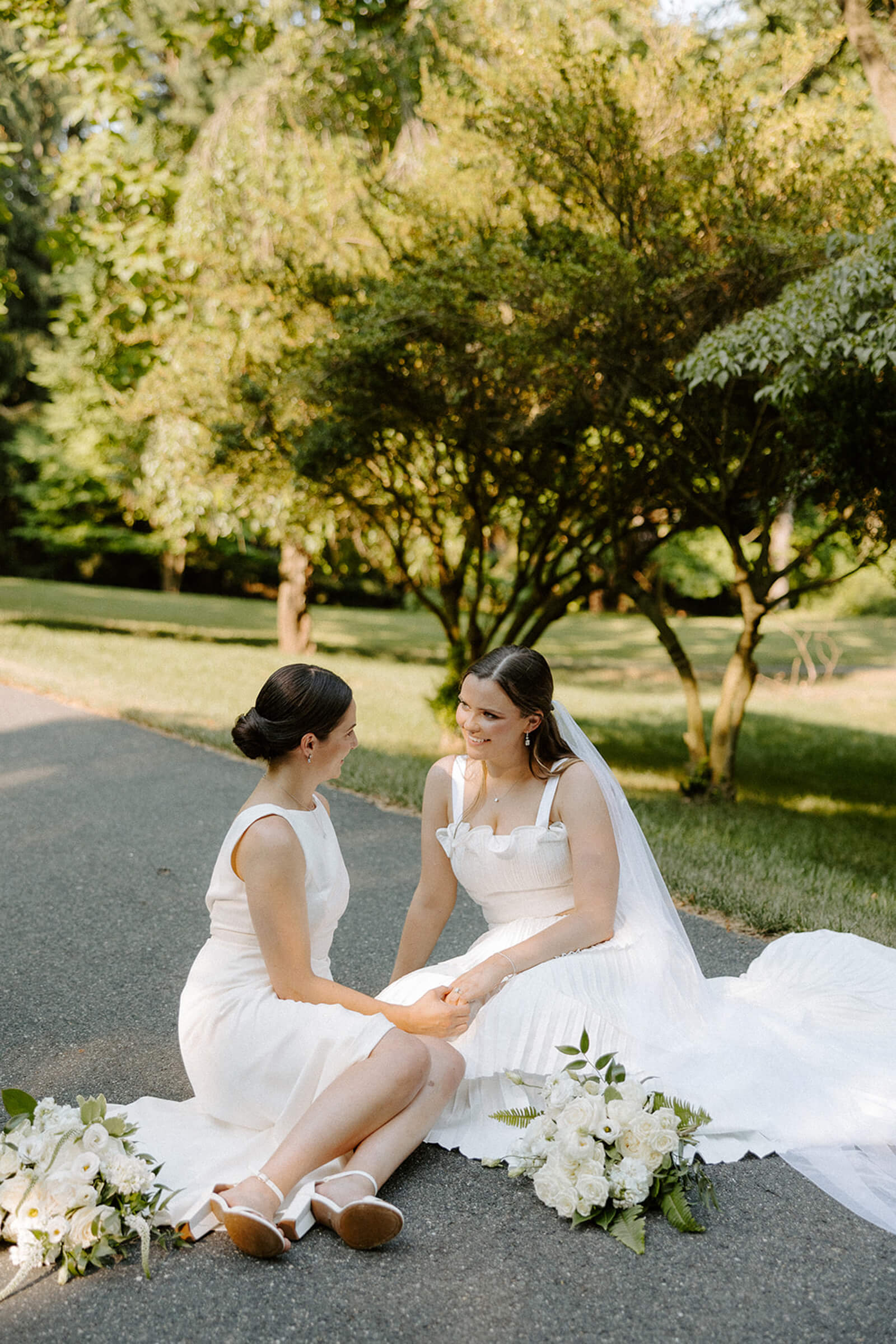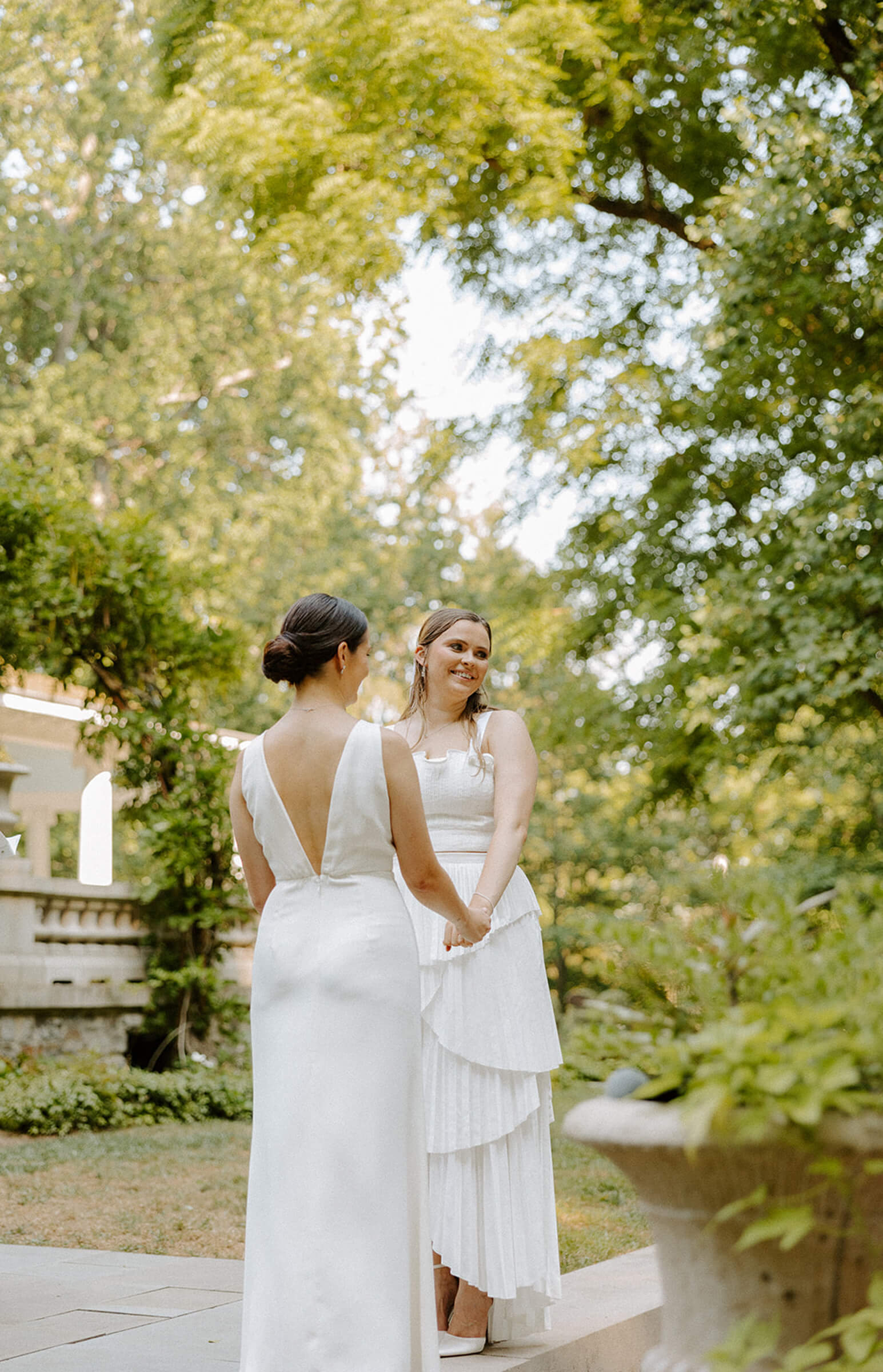 Beauty NVS Bridal Caterer Crossroads Bistro Drag Queens Brooklyn Heights and Iyana Deschanel Floral Design Ann’s Garden Honeymoon South Africa Invitations The Knot Location Liriodendron Mansion Music Shiny Entertainment Officiant Katie Connors, Kelsey’s cousin/BFF and Rachel’s BFF Photographer Olive & Mint Photography with Tia Bustanoby Wedding Dresses Anthropologie