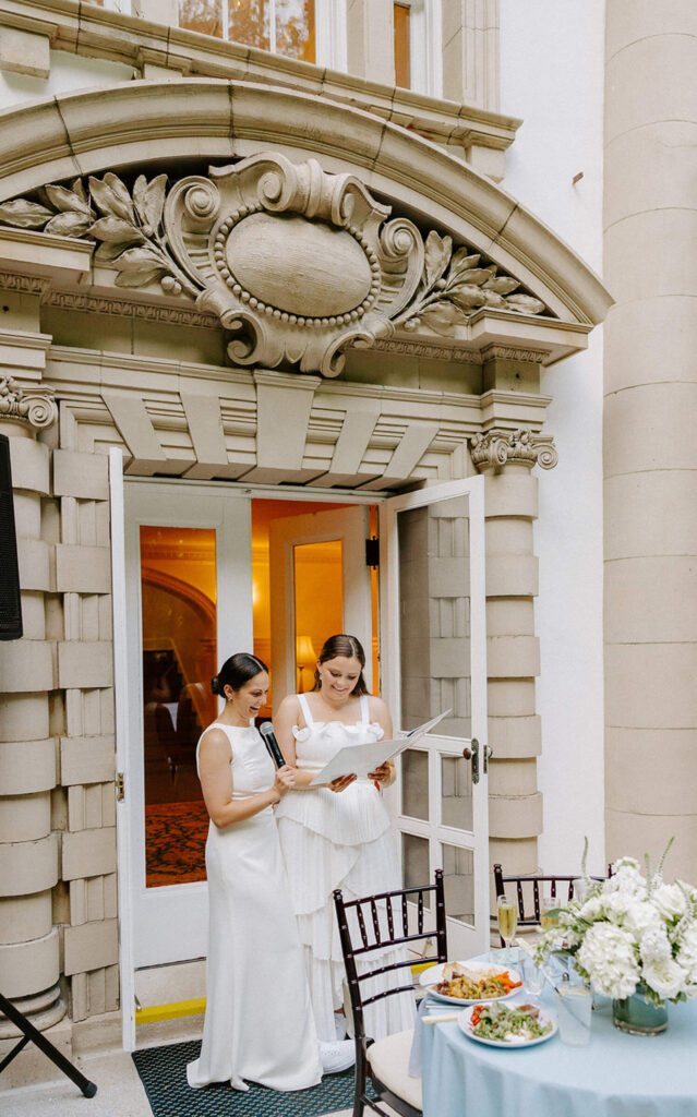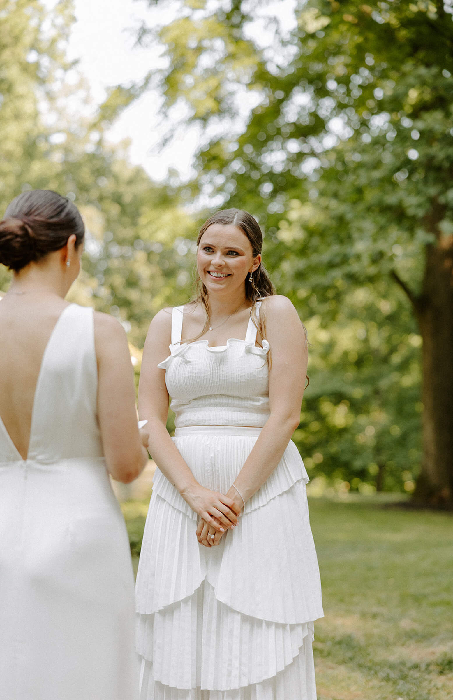 How You Met We met in New York City on Bumble during the pandemic. Although we couldn’t meet in person for several weeks, we quickly realized we couldn’t stop talking and began planning a series of virtual dates. During those early conversations, we stumbled upon a meaningful (and completely unexpected) connection: one of Rachel’s best friends is Kelsey’s first cousin, Katie, who also happens to be her best friend. Neither of us had any idea about the overlap beforehand, which made the discovery feel like a bit of fate. Katie ultimately became our wedding officiant, making the day feel even more personal.