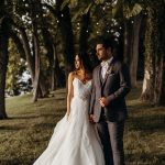 When it came time for Samantha Garrett and Vince McHale to pick their wedding location, they knew the town before they knew anything else. Vince’s family has a house in St. Michaels, on the Eastern Shore, and the couple, who live in Annapolis, spends many free weekends there. “St. Michaels wasn’t just a beautiful town to get married in for us. That place meant so much more,” says Samantha. “It’s where our relationship flourished the most.” After being set up by a mutual friend, Samantha and Vince got to know each other over long walks to the cornfields with the McHale family dogs and trying to catch crabs out on the boat. They knew their wedding would be on the Chesapeake Bay. After checking out a few venues, the two became enamored with Kirkland Manor. “It has this magical feeling when you walk around during the sunset,” says Samantha. “It’s quiet and off-the-beaten road and feels like you’ve entered this secret world that no one knows about.” The venue naturally lent itself to the bohemian garden design theme. “I loved the idea of having an exorbitant number of flowers and greenery sprawled out around the grounds,” says Samantha. “At the same time, I didn’t want to take away from the stunning nature that was already situated in the backyard.” Luckily, Vince’s family owns a landscape company, and they—along with the florist and wedding planner—brought the venue to life for the couple. “All of the stunning plants and flowers that I envisioned from the beginning were brought in and immaculately placed around the venue,” Samantha says. Everything was covered with dusty roses, touches of gold, hanging lanterns, and romantic string lights. Seeing the McHale Landscape trucks on the property made it feel even more special. “It made the entire weekend feel like home,” she says. Samantha walked down an aisle of fluffy pampas grasses to greet Vince as the couple said their vows on the banks of the Miles River. The rest of the night was spent on the energetic dance floor under a sailcloth tent draped with greenery. Even with all the incredible details, Samantha focused on the simplicity of the day. “I know that sounds crazy, but everything just flowed so nicely,” she says. It was all perfect: the ease of getting ready at the manor and Vince seeing her for the first time on a tree-lined path. The effortlessness of their families melding into one. The charm of the little flower girls dancing next to a rowboat filled with ice-cold beers. They were in a place that felt both new and wonderous but also familiar. Says Samantha, “That town will always be in our hearts.”
