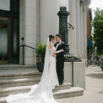“We fell in love with the venue at first sight, and that inspired the whole design concept of our wedding,” says Lauren of Citizens Ballroom, a historic bank that sits grandly at the corner of Patrick and Market streets in downtown Frederick.