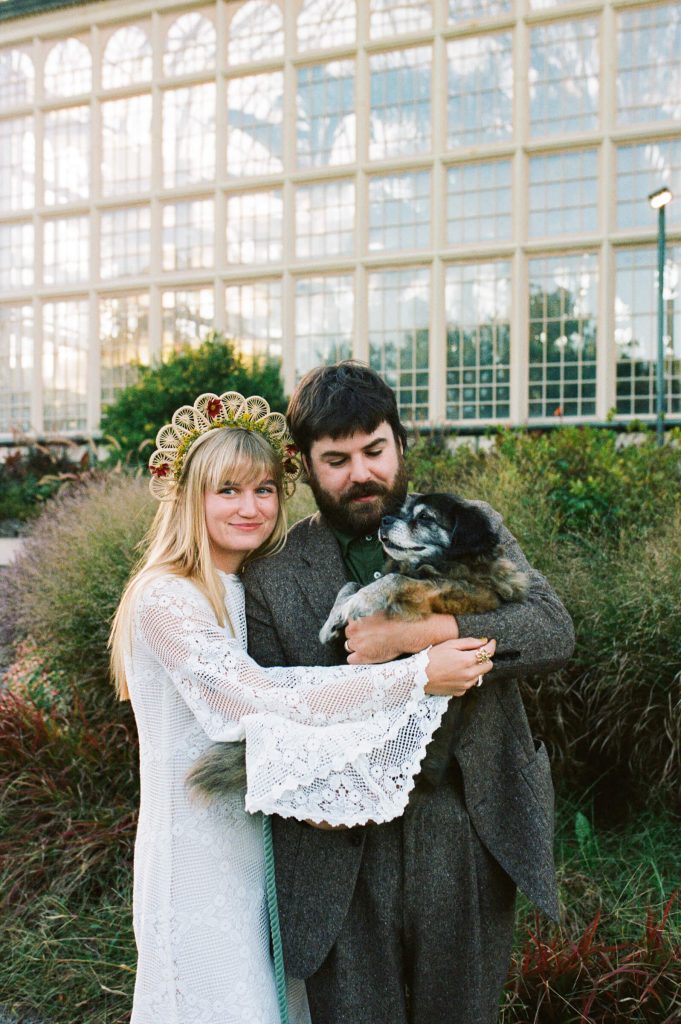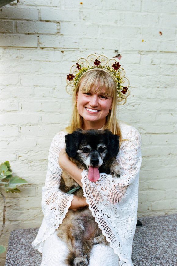 Another special touch was Madelyn’s vintage dress, which had last been worn in 1969. “The previous owner relayed that it was the start of a long and happy marriage, which made it feel so special to wear,” she says. The sunshiny fall day also included her older brother, Steven, playing the piano while they walked down the aisle, a fully vegan wedding including dinner from NiHao, and, of course, Tiffany the dog. “She attended the ceremony,” says Madelyn. “She even got to walk Aaron down the aisle.”