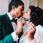Beauty Ronkeya (makeup); Desi at Tresses Unlimited (hair) Dessert Mrs. Macarons (macarons) Floral Design Nadine De Leon Designs Groom ASOS Location Main Street Ballroom Music Jen Violin (ceremony) Officiant Ostein Truitt Photographer Katherine Elizabeth Photography Videographer Quamina Image Wedding Dress Azazie Wedding Planner Jennifer Rose Events and Weddings
