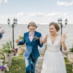 Beauty Brushed Beauty (hair); Makeup by Sarah Lynn (makeup) Bride’s suit Baltimore Custom Clothiers Bridesmaids Zola Caterer & Cake Catering by UptownFlowers Willow Oak Flower and Herb Farm Honeymoon Airbnb, Wailea Beach Resort – Marriott, Maui Invitations Minted Location The Knollview House, Celebrations at the Bay Music Dave Caplan, LOAR Media & Entertainment Officiant Memorable Moments by Marjorie Photographer Milana Braslavsky Photography Wedding Dress Love and Lace Bridal Boutique