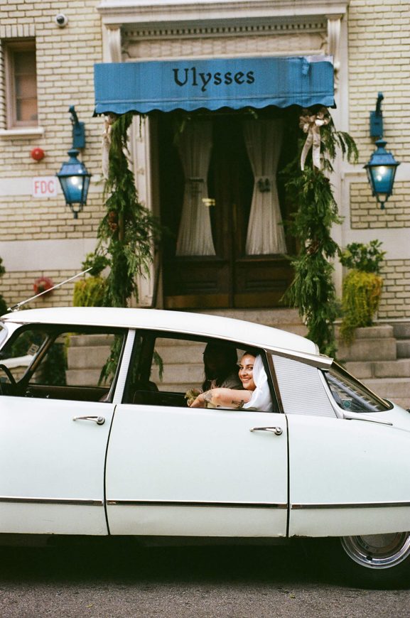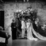 BEAUTY Caitlyn Meyer CATERER & CAKE Copper Kitchen CENTERPIECES 3D printed centerpieces by Immel Design FLORAL DESIGN Yarrow Floral Co. HONEYMOON Twin Farms, VT INVITATIONS KLB Creates LOCATION Mt. Washington Mill Dye House MUSIC Neil Nines OFFICIANT Sarah’s stepmom, Kim PHOTOGRAPHER Caitlin Taylor TRANSPORTATION Thoroughbred VIDEOGRAPHER Elis Llinares, Super 8 film WEDDING DRESSES Mikynsi wore a custom suit by J. Boyne Western Wear. Sarah wore Kim Kassas Couture WEDDING PLANNER The Otherside Creatives