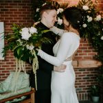 Wedding Design Inspiration I didn’t really have any inspiration photos or a specific image in my mind, I was just going off of how I wanted it to feel. My goal was that the night would feel like a super fun party that we got married at, versus a wedding where the party is the afterthought. I wanted it to feel cozy, intimate, and moody, but fresh. We had beautiful flowers, dark green velvet tablecloth, lots of gold/brass, and candles. It turned out just as beautiful as what I pictured in my mind.