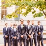 Beauty Behind the Veil Bridesmaids Dessy Cake SugarBakers Cakes Caterer Classic Catering Dog Wrangler Simple Solutions Dog Training Entertainment Clemson Tiger Flowers Eventi Floral & Events Groom and Groomsmen Custom ties from The Cordial Churchman Invitation and Save the Date Ruby the Fox and the Groom’s aunt Lighting and Draping Revolution Event Design & Production Location Peabody Library Music Sam Hill Entertainment Officiant Pastor Ron Pennekamp Photographer Brooke Michelle Photography Rentals Party Rental Ltd., Select Event Group, BBJ Linens and La Tavola Fine Linen Transportation VintageLimos Biz Wedding Dress Bridals by Elena/Maggie Sottero Wedding Planner Eventi Floral & Events