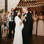 Beauty Alex Kasey Studios (hair); Chrissy Forbes (makeup) Bistro Lighting & Drapery Event Solutions Bridesmaids Revelry (Skye satin dress in Blush, Rosalie tulle convertible dress in Greenery, and Maeve tulle dress in Bradshaw Blush) and Jenny Yoo (Dahlia Palermo satin dress in Sage) Cake Copper Kitchen (with florals by Mya Frey) Caterer Copper Kitchen Cocktail Furniture Pretty Little Wedding Co. Flatware, Dinnerware & Linens Select Event Rentals Floral Design Mya Frey Flowers Groom and Groomsmen BLACK By Vera Wang Black Notch Lapel Tux Hotel Hotel Indigo Downtown Baltimore Invitations Minted “The Wedding” by Kaydi Bishop Location Mt. Washington Mill Dye House Music DJ Bedro Officiant Pastor Ryan Cox with Severn Covenant Church Photographer Mary Bell Wedding Outfits Morilee #2406 dress from J&B Bridals in Chambersburg, PA (ceremony); Club L London “Sing To Sleep” white maternity one-shoulder cape jumpsuit (reception)