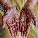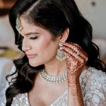 Neha loves mehndi and her bridal mehndi artist, Just Henna by Shazia, did a phenomenal job—making peacock designs, gorgeous shading and shapes, and put in the tradition of hiding Aditya’s initials into her palm for him to look for later. Since Neha had worn red to her court marriage ceremony, she chose to go with a champagne colored lehenga with a pop of red in the bangles for the reception. Aditya, matching Neha’s stunning outfit, put on his best James Bond impersonation with a black tuxedo, trimmed with champagne suspenders and pocket square. His mehndi was a heart design right on the palm, adorned with “Neha & Aditya.”