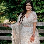 Neha loves mehndi and her bridal mehndi artist, Just Henna by Shazia, did a phenomenal job—making peacock designs, gorgeous shading and shapes, and put in the tradition of hiding Aditya’s initials into her palm for him to look for later. Since Neha had worn red to her court marriage ceremony, she chose to go with a champagne colored lehenga with a pop of red in the bangles for the reception. Aditya, matching Neha’s stunning outfit, put on his best James Bond impersonation with a black tuxedo, trimmed with champagne suspenders and pocket square. His mehndi was a heart design right on the palm, adorned with “Neha & Aditya.”