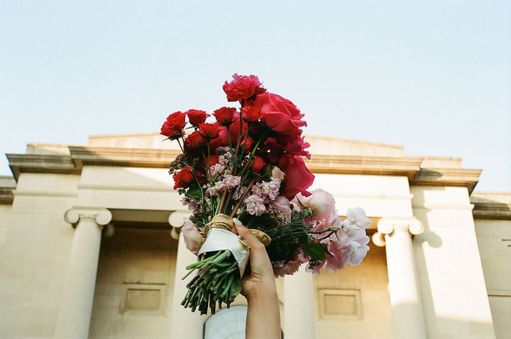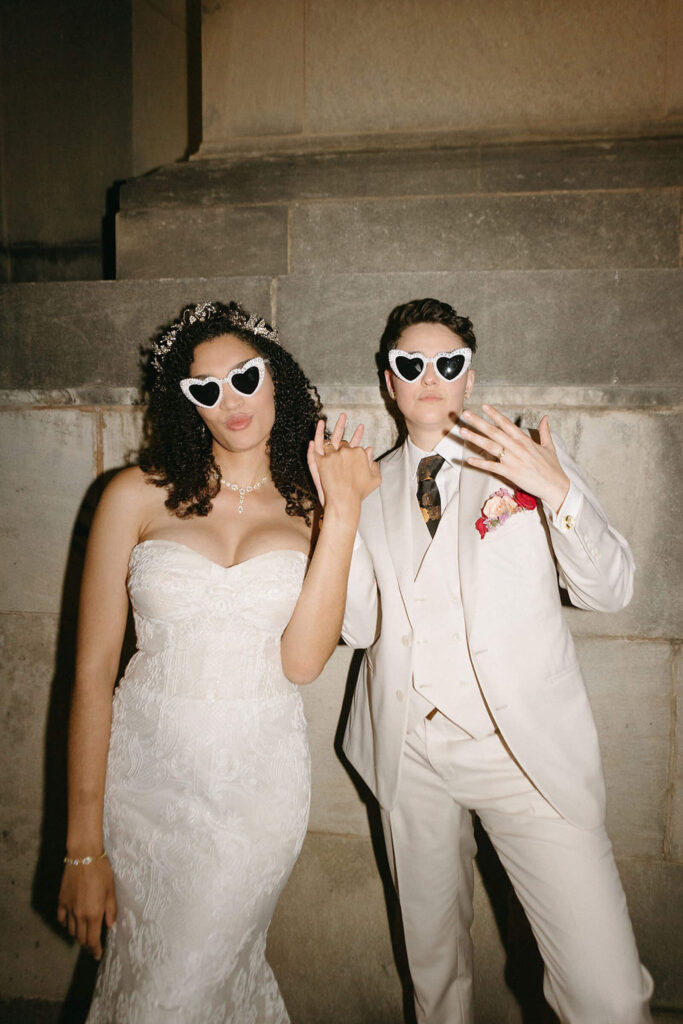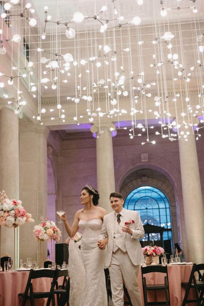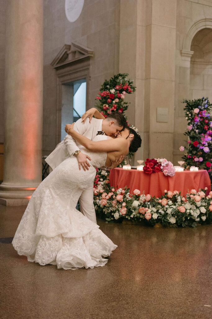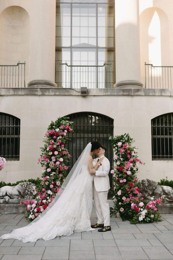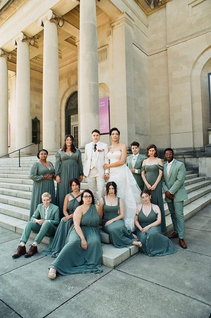 BEAUTY Guidugli Artistry BRIDESMAIDS Azazie CAKE & CATERER Zeffert & Gold FLORAL DESIGN We Do Event Design INVITATIONS Minted LOCATION Baltimore Museum of Art MUSIC Apollo String Quartet, Bachelor Boys Band OFFICIANT Deirdre Wade, a dear friend of ours PHOTOGRAPHER Sarah James Photography WEDDING COORDINATOR We Do Event Design WEDDING OUTFITS Alexis: Lazaro gown, jewelry, and veil from Castle Couture Bridal in New Jersey; and after-party Giselle jumpsuit from Abercrombie & Fitch. Nic: 9 Tailors Boston suit and Taft shoes. WEDDING PARTY Abitto suits