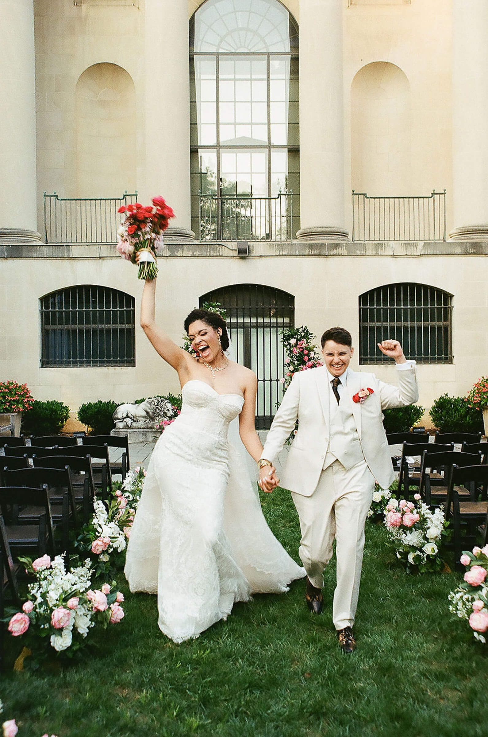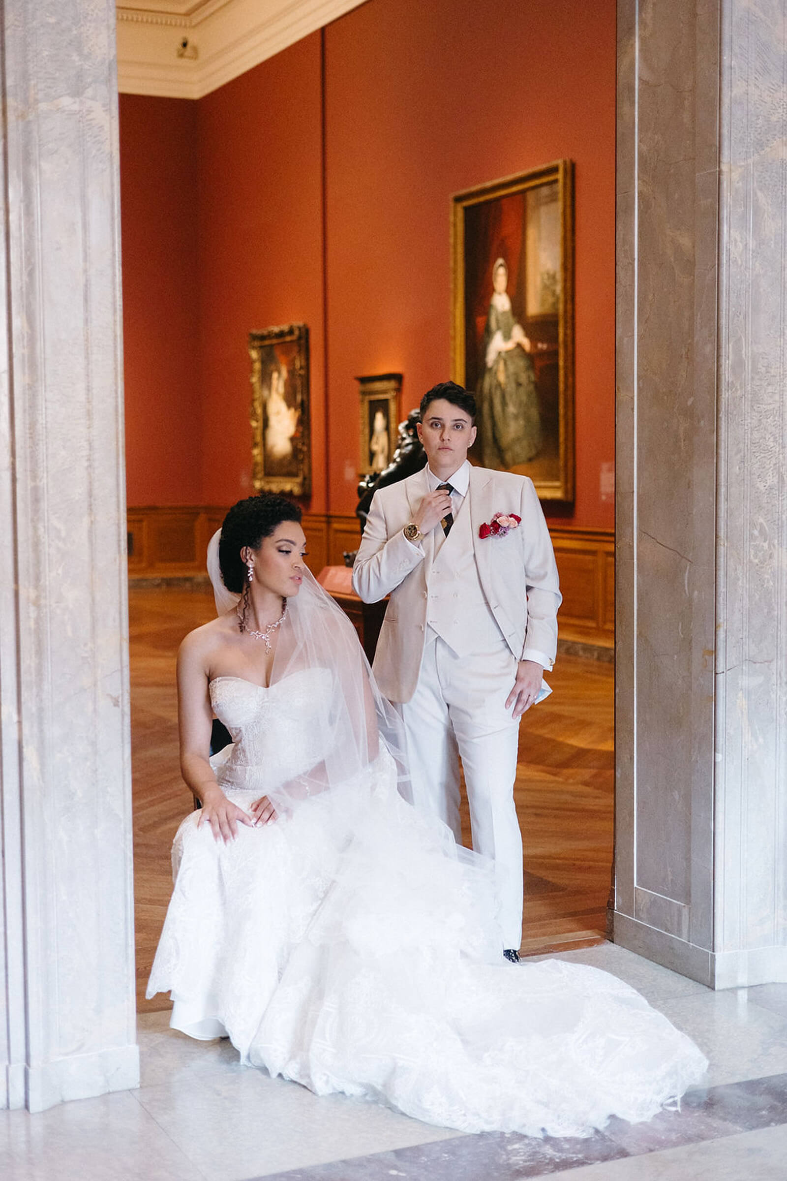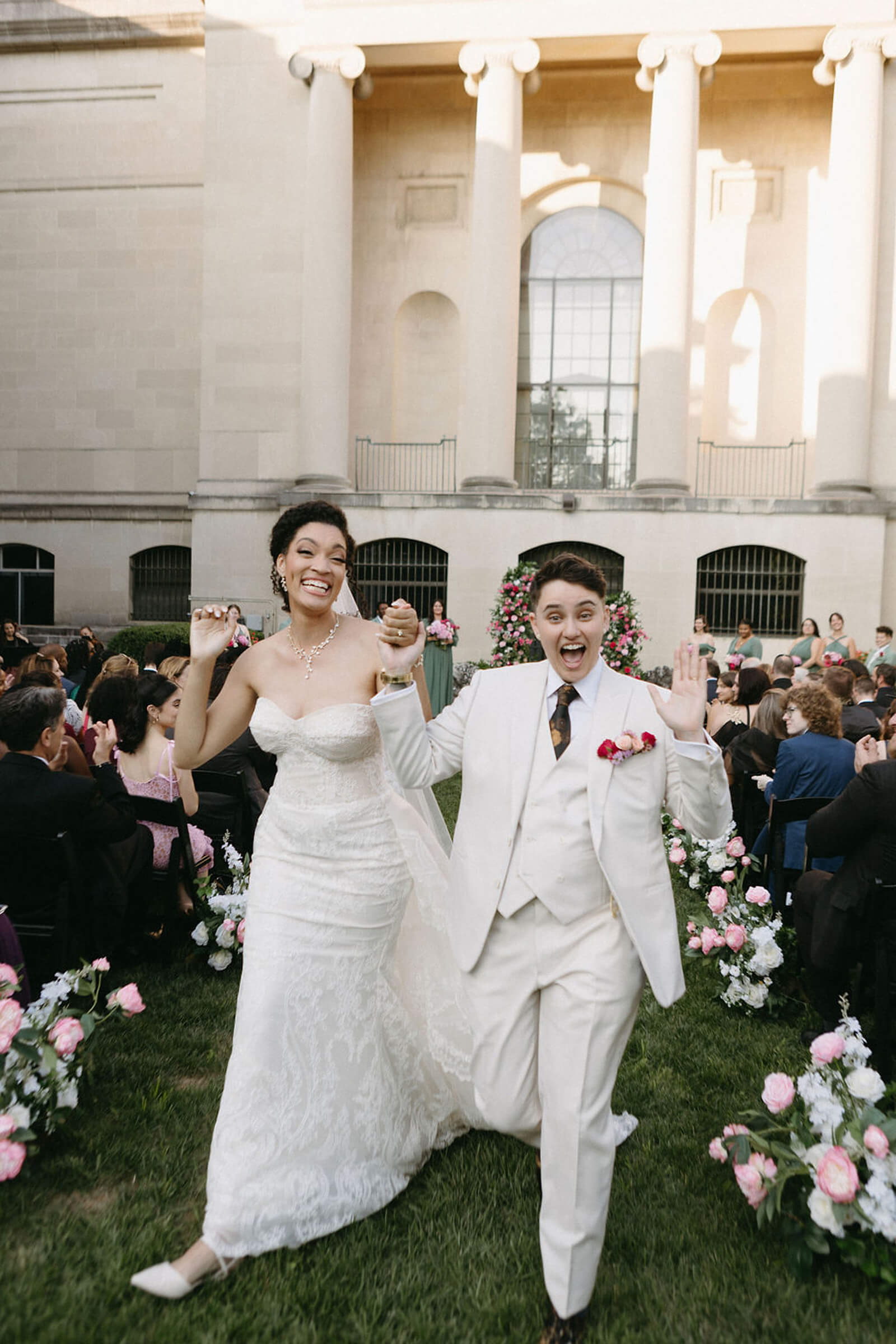 BEAUTY Guidugli Artistry BRIDESMAIDS Azazie CAKE & CATERER Zeffert & Gold FLORAL DESIGN We Do Event Design INVITATIONS Minted LOCATION Baltimore Museum of Art MUSIC Apollo String Quartet, Bachelor Boys Band OFFICIANT Deirdre Wade, a dear friend of ours PHOTOGRAPHER Sarah James Photography WEDDING COORDINATOR We Do Event Design WEDDING OUTFITS Alexis: Lazaro gown, jewelry, and veil from Castle Couture Bridal in New Jersey; and after-party Giselle jumpsuit from Abercrombie & Fitch. Nic: 9 Tailors Boston suit and Taft shoes. WEDDING PARTY Abitto suits