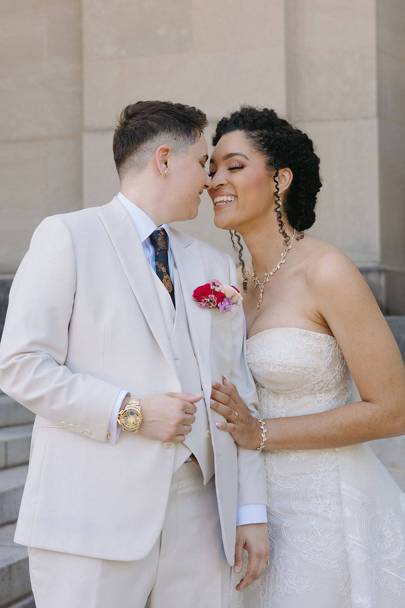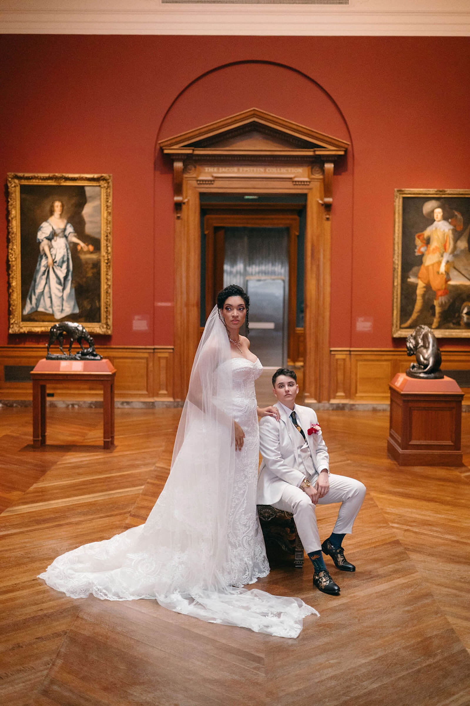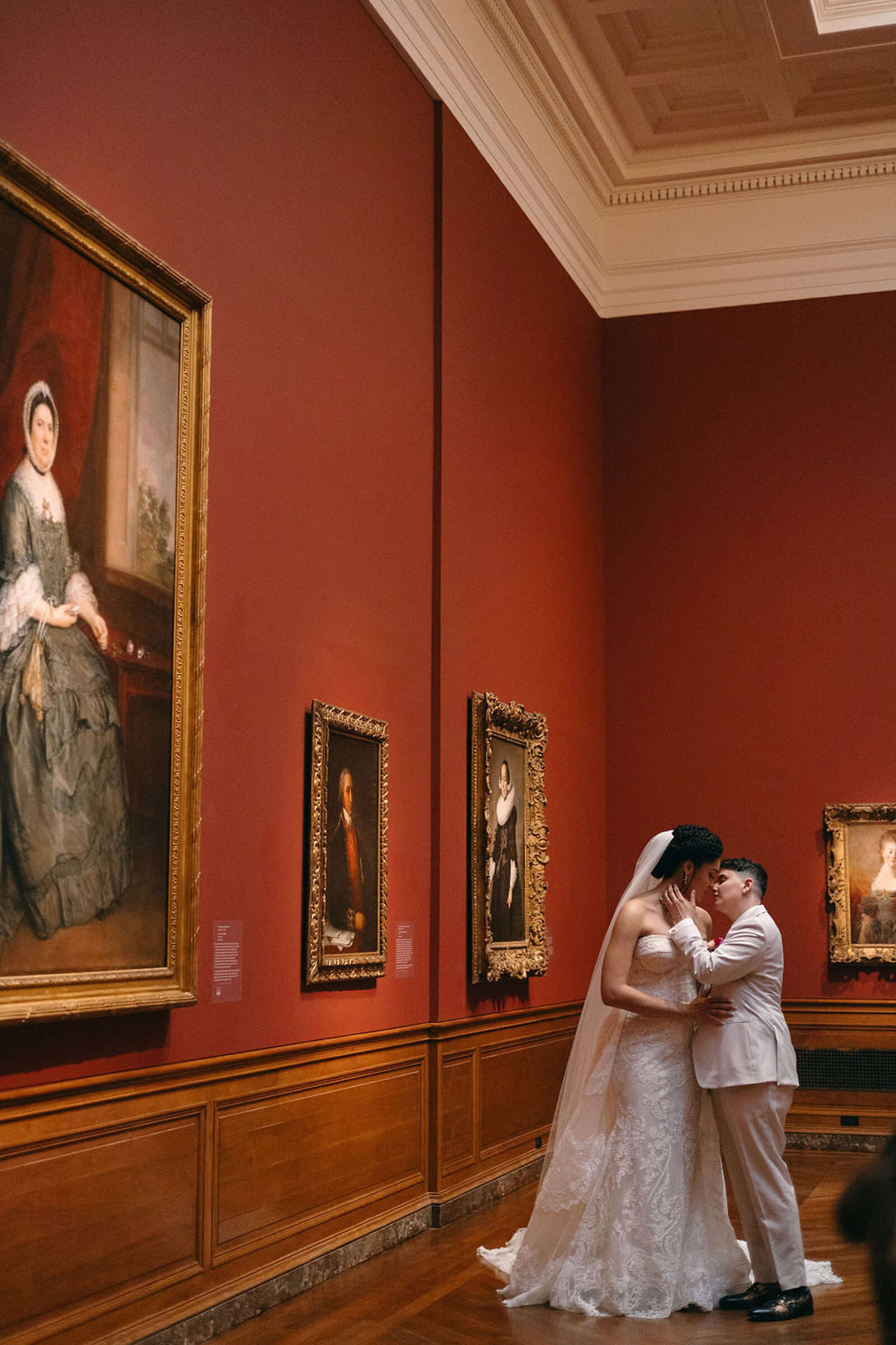 BEAUTY Guidugli Artistry BRIDESMAIDS Azazie CAKE & CATERER Zeffert & Gold FLORAL DESIGN We Do Event Design INVITATIONS Minted LOCATION Baltimore Museum of Art MUSIC Apollo String Quartet, Bachelor Boys Band OFFICIANT Deirdre Wade, a dear friend of ours PHOTOGRAPHER Sarah James Photography WEDDING COORDINATOR We Do Event Design WEDDING OUTFITS Alexis: Lazaro gown, jewelry, and veil from Castle Couture Bridal in New Jersey; and after-party Giselle jumpsuit from Abercrombie & Fitch. Nic: 9 Tailors Boston suit and Taft shoes. WEDDING PARTY Abitto suits