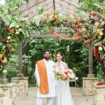 They wanted to capture that same warmth in every aspect of their wedding. “We wanted it to feel energetic and cozy with a lot of warm colors to emulate that,” says Roselyn. It was also important to them to include traditions from their separate cultures. Gavin’s family is from India; Roselyn’s mother’s side of the family is Chinese Indonesian, otherwise known as Peranakan; and her father, who grew up in Maine, traces his roots to Europe. “The internet has so many resources for fusion weddings, and we came to find that ‘Chindian’ weddings are a more common fusion than we thought,” Roselyn says.