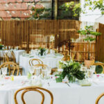 Wedding Design Inspiration Danielle grew up in New Hampshire and Olivia spent her most formative years in rural Wyoming, so we wanted our wedding to feel like our happiest memories from childhood … gardeny, backyardy, relaxed, simple, peaceful. We just went with simple everything. Wooden chairs, colorful glassware, simple linens, plants on the table. We didn’t think too hard about it!