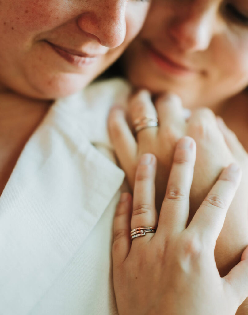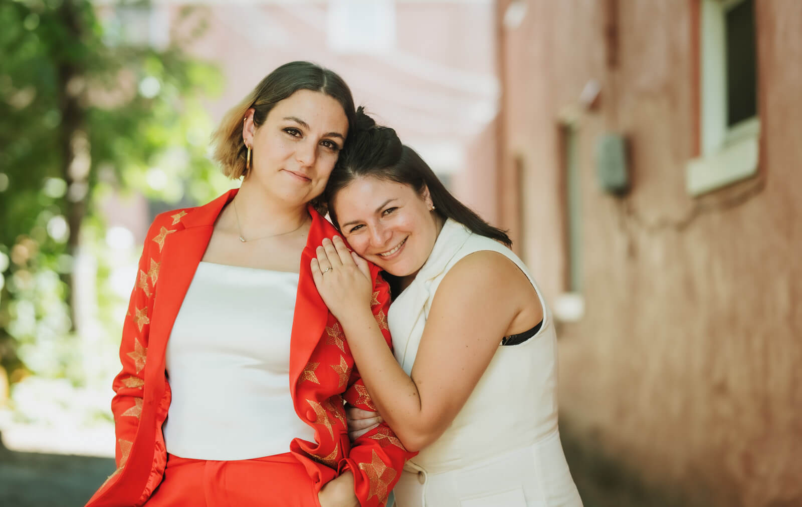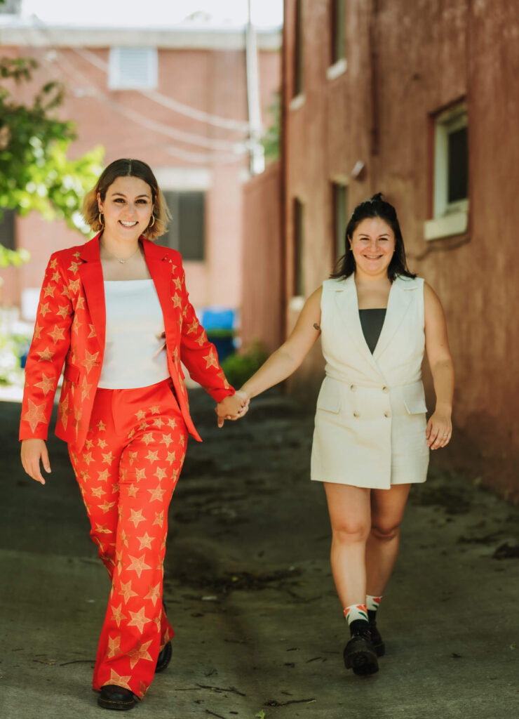 The Engagement New Year’s Eve 2023—classic. We were getting ready to go out with friends and Danielle was in the bath listening to music when Olivia jumped in the bath, fully clothed, because she is spontaneous and silly. Danielle had known for a while that she was going to ask Olivia to marry her but hadn’t found the right moment and this felt like the exact right one. Danielle asked, “Do you want to marry me this year?” and Olivia (a crier) immediately started sobbing, but then of course said yes.
