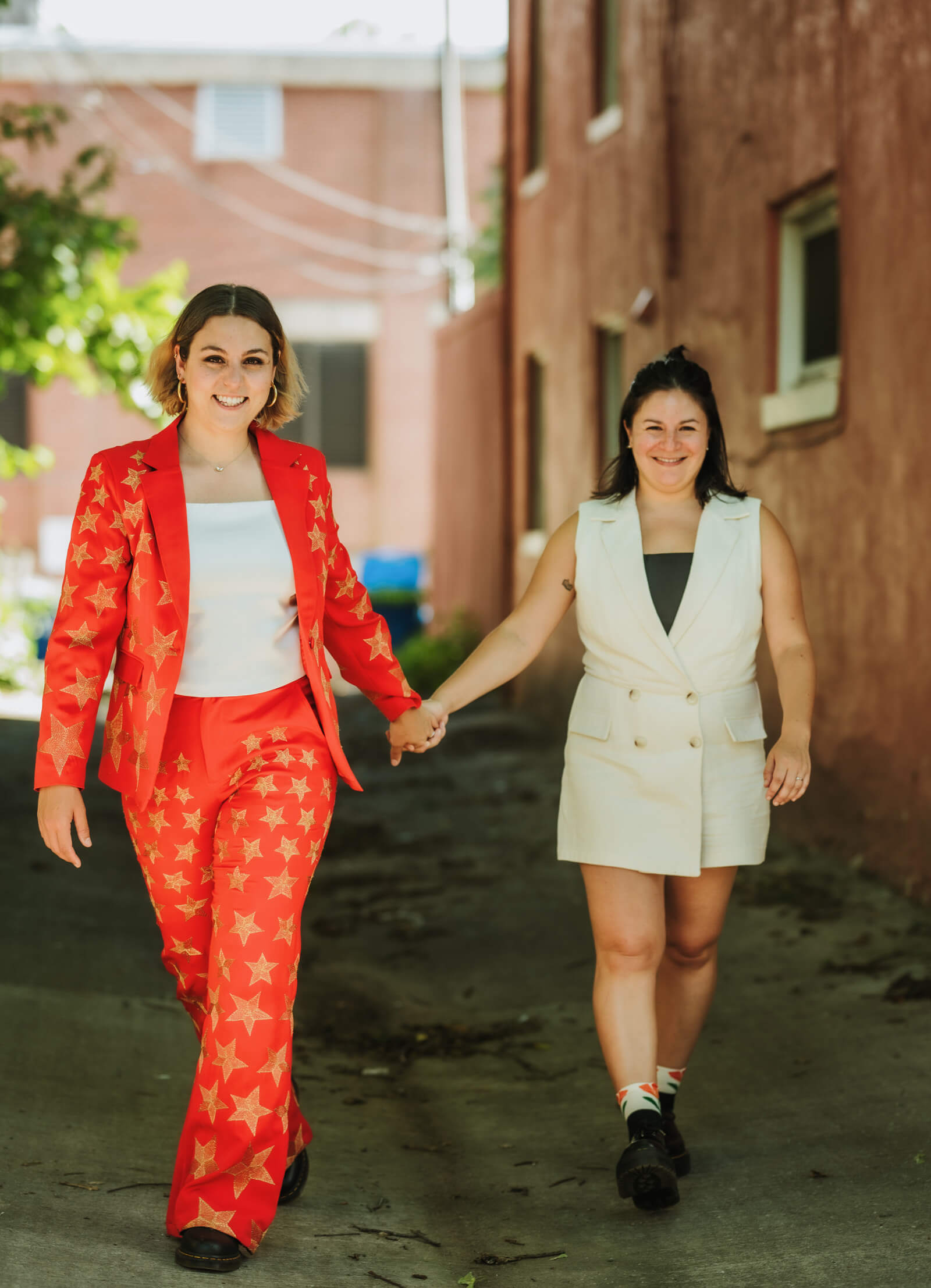 How You Met We met on a dating app while we were both living in D.C. Olivia had been living in D.C. for years, but Danielle had just moved there for a new job. We matched while Danielle was out of town, so we texted for two weeks before Olivia ghosted Danielle (not her finest moment), which Danielle was thankfully unfazed by. Danielle texted Olivia a month later to go on a date and we went out the next day. That date is now our anniversary.