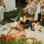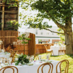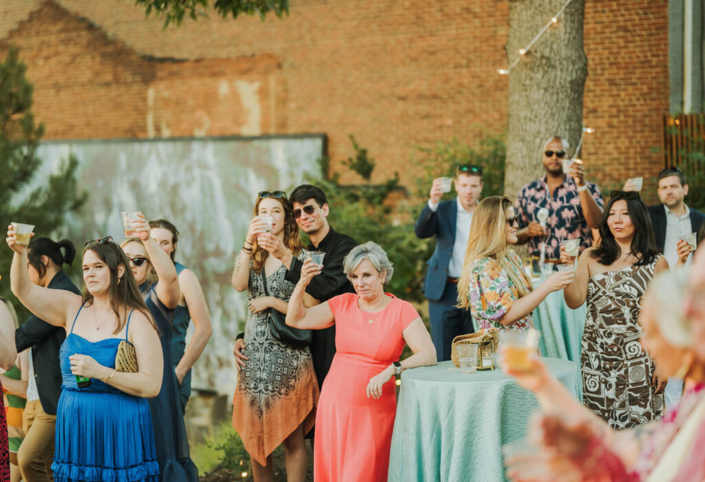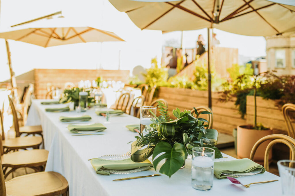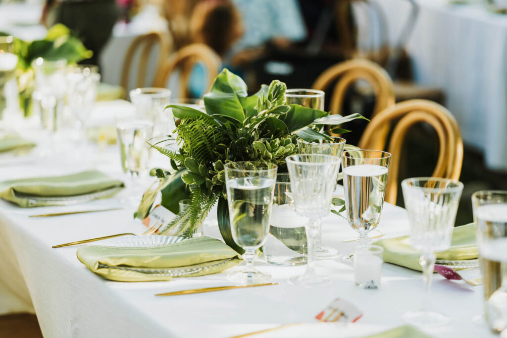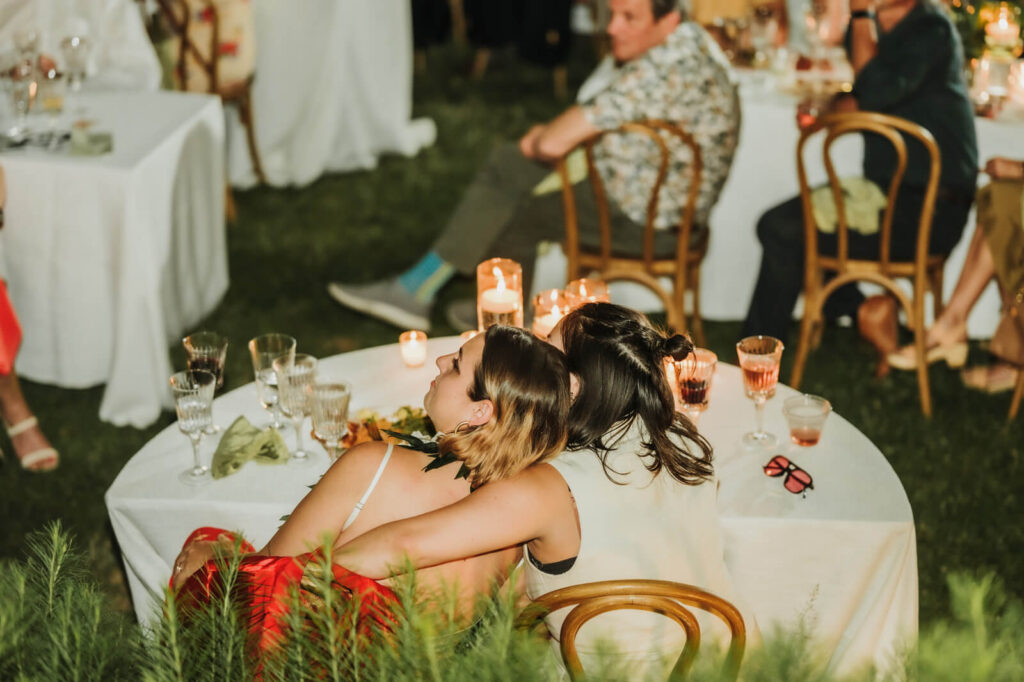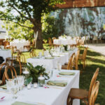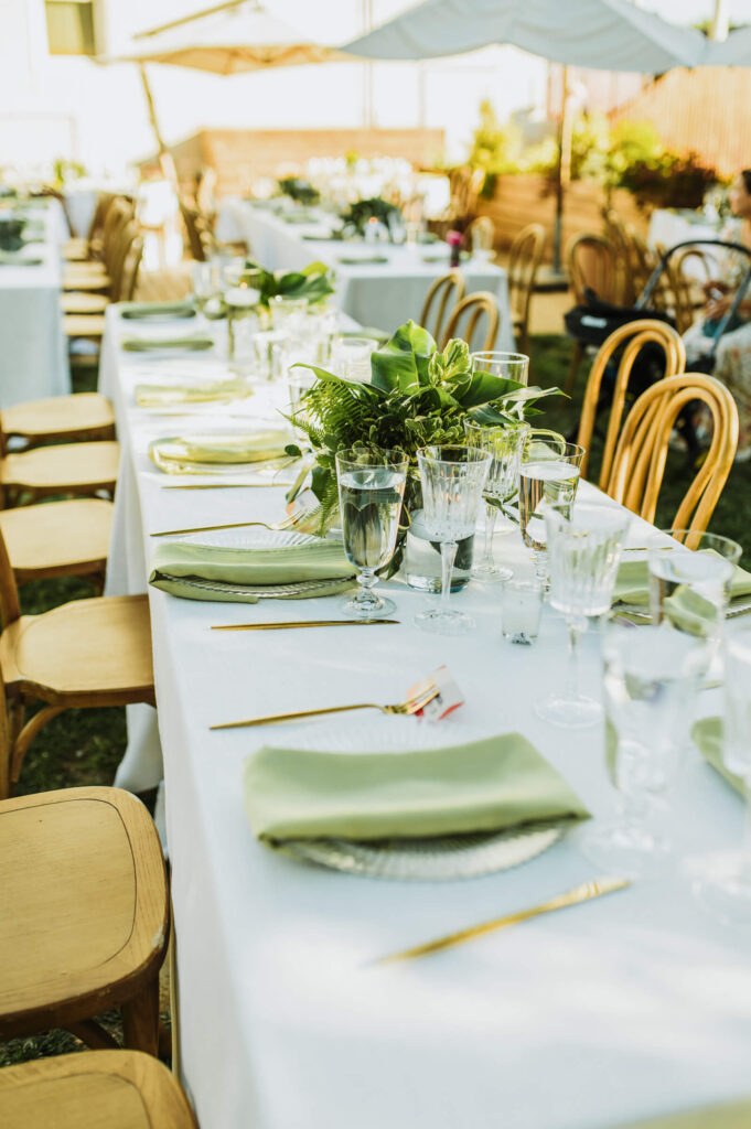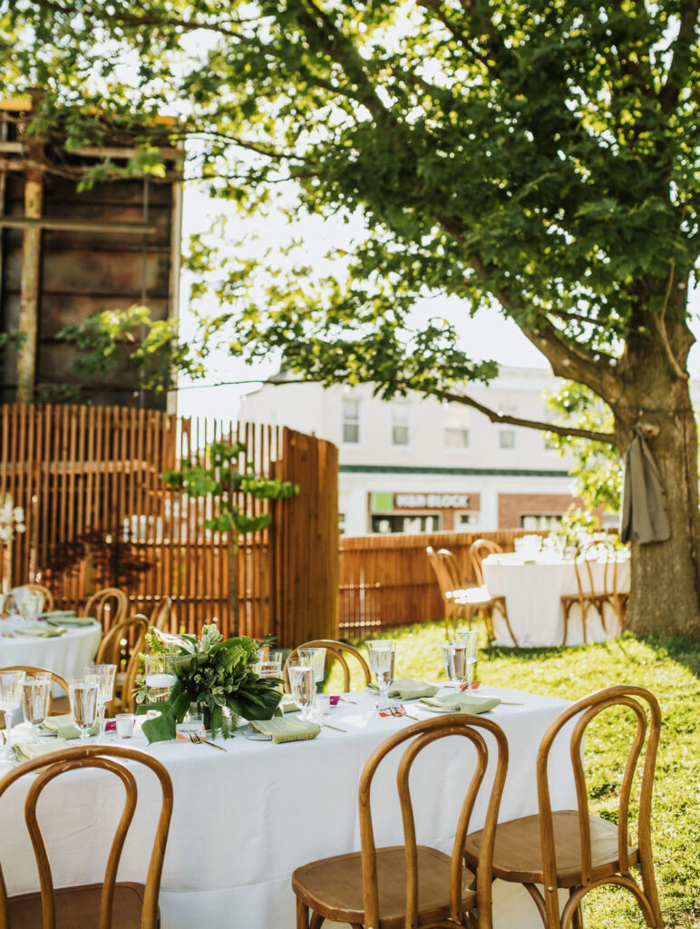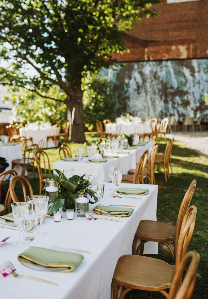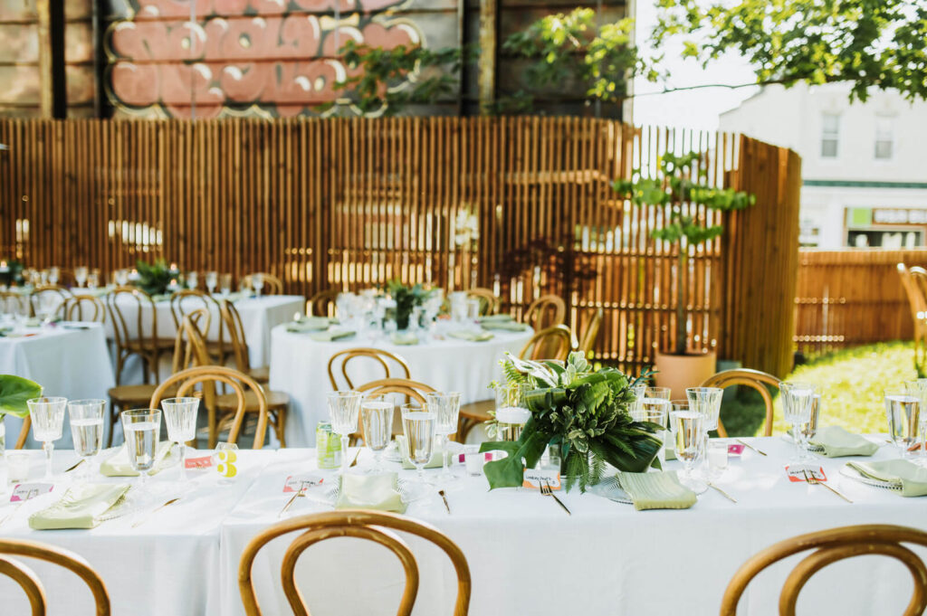 Wedding Design Inspiration Danielle grew up in New Hampshire and Olivia spent her most formative years in rural Wyoming, so we wanted our wedding to feel like our happiest memories from childhood … gardeny, backyardy, relaxed, simple, peaceful. We just went with simple everything. Wooden chairs, colorful glassware, simple linens, plants on the table. We didn’t think too hard about it!