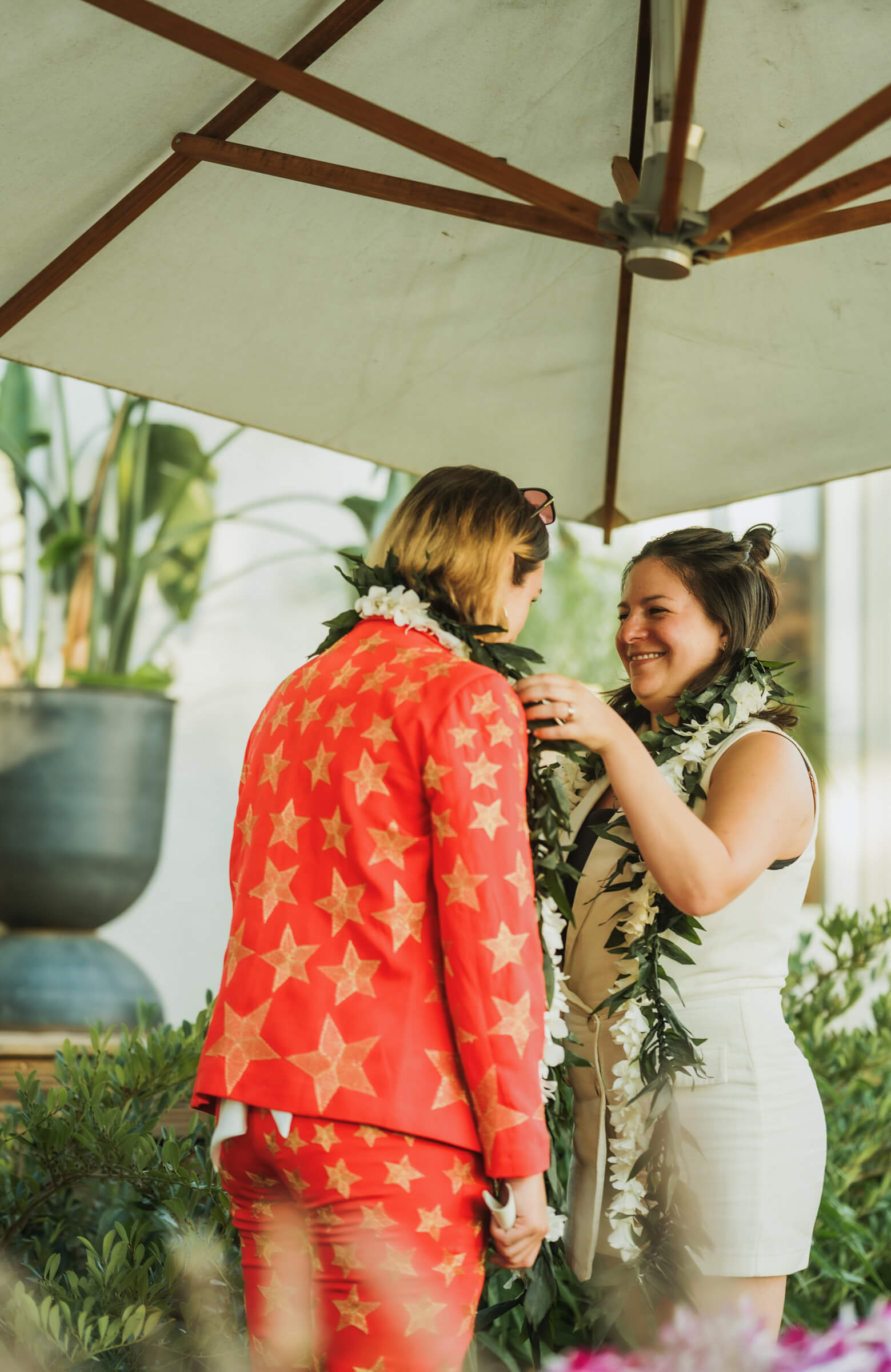 Favorite Details Our outfits and the leis. We both agonized over what to wear and, the day of, we were just like—these things feel great, let’s just wear them. The leis were created by a Native Hawaiian owned company in Hawai’i and were so beautiful.