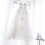 Favorite Details I think invitations set the tone for a wedding, and ours made a statement. We had boxed invitations with black and gold sparkle. They were so beautiful and unique that they got people excited to attend the wedding and see all the details. Susan at Just Ink is just phenomenal and did such a great job. For the wedding day, gosh that’s so hard to pick. One of my favorites was my husband’s idea to hang flowers from the chandeliers in the room. I loved how that element came out and really tied the room together. Another favorite detail was the sofreh to incorporate my husband’s Persian culture. It was so beautiful and unique – we loved it. I loved my husband’s outfit change. Since I wasn’t changing dresses, I really wanted him to have a wardrobe change because he looked so handsome in the white jacket. So right before we cut the cake, he changed to his white tux jacket. I think it was so fun and different to have the groom change and not the bride. My personal favorite detail might have to be my dress and veil. I didn’t want to take my veil off after the ceremony because I loved it so much.