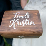 Another thing that worked out? The ceremony box. After hunting on Etsy, they finally found a box at a local craft store. They went through all their mementos from their time together and picked out the really important ones to place in the box (along with their vows): a favorite picture of them in 2012, a swatch of her prom dress she gave him to match his vest, a note she had written to him early in their courtship, and their tickets to the after-graduation harbor cruise, during which Tim told Kristin he liked her for the very first time.